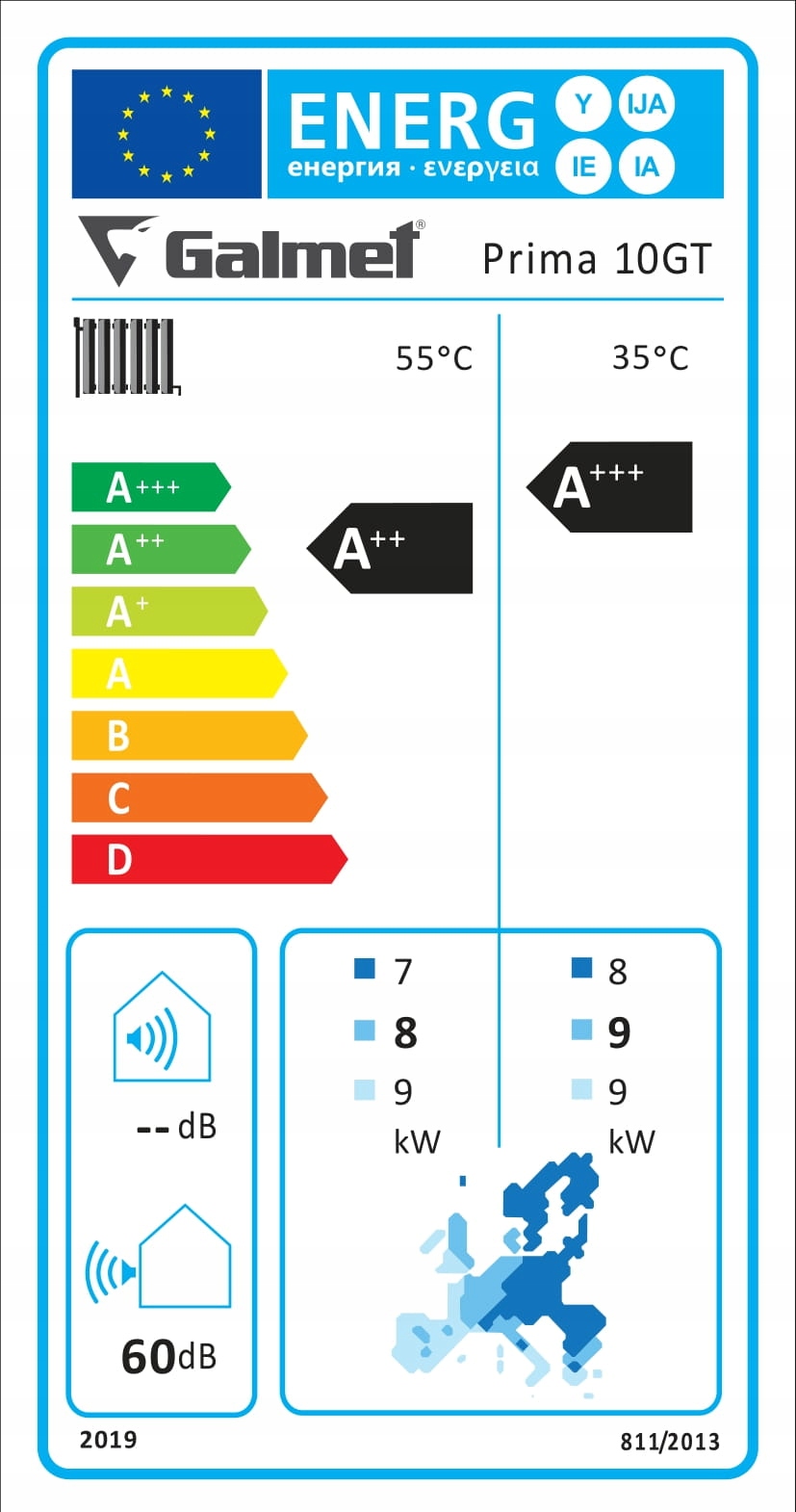 Energy efficiency class, heating mode LWT = 55C: a ++