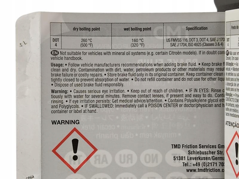- Елемент: гальмівна рідина DOT-4 від TEXTAR
