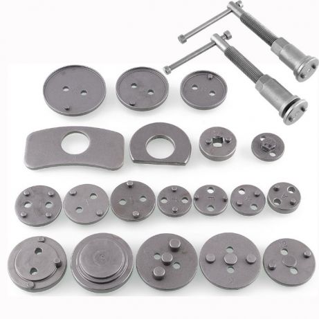 У набір входить правосторонній поворотний прес. Набір підходить для більшості автомобілів на ринку. Все це упаковано в пластикову валізу. Набір виготовлений зі сталі найвищої якості, упакований в міцний ударостійкий і дуже зручний для транспортування чохол.Ручка оснащена магнітним наконечником, який утримує кожен адаптер.Ідеально підходить для роботи з керамічними поршнями. Набір призначений для кожної автомайстерні, де він допомагає прискорити обслуговування гальмівних систем. Набір з 12 предметів для витягування/віджимання поршнів у циліндрах гальмівної системи, необхідний при ремонті автомобілів, обладнаних дисковими гальмами. такі автомобілі як: