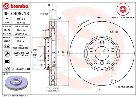 гальмівний диск. BMW 5 F10 10- LP Brembo 09.C405.13