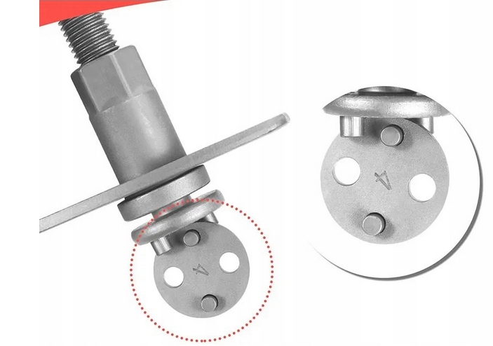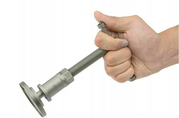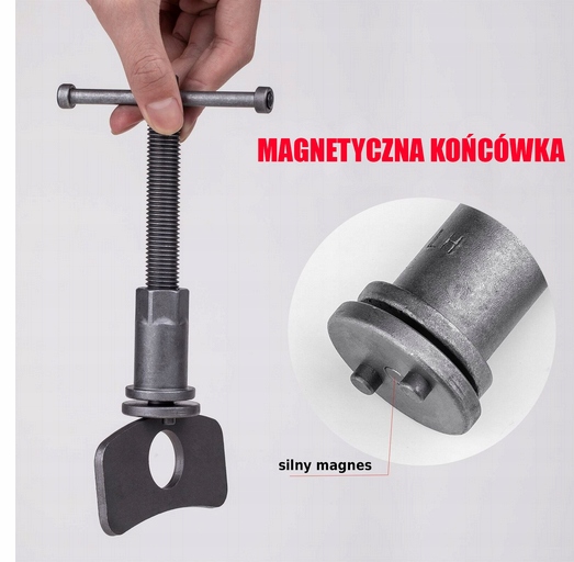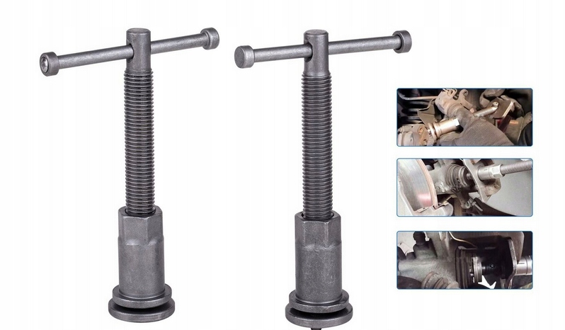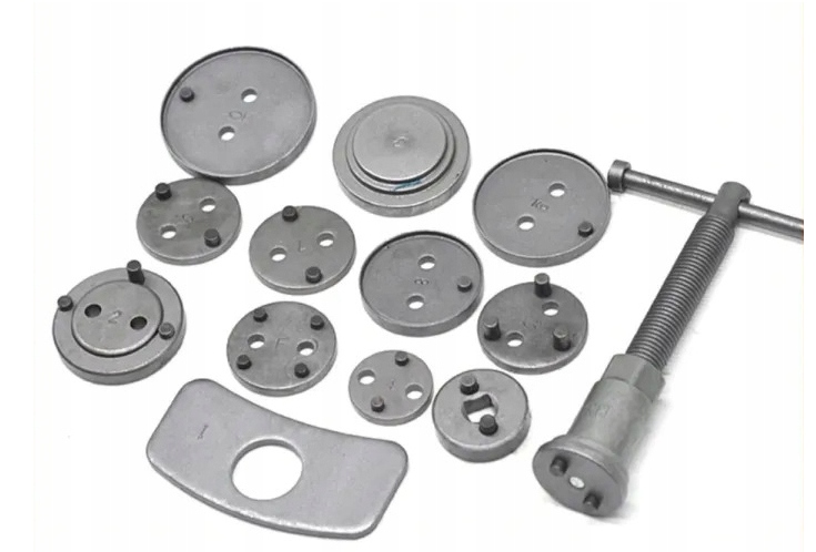 Професійний набір з 13 предметів для реверсування/запресовування поршнів у циліндрах гальмівної системи, необхідний при ремонті автомобілів, обладнаних дисковими гальмами. Ручка оснащена магнітним наконечником, завдяки якому вона утримує на осі пластину, відповідну даному поршню. Набір призначений для кожної автомайстерні, де він допомагає прискорити обслуговування гальмівних систем.