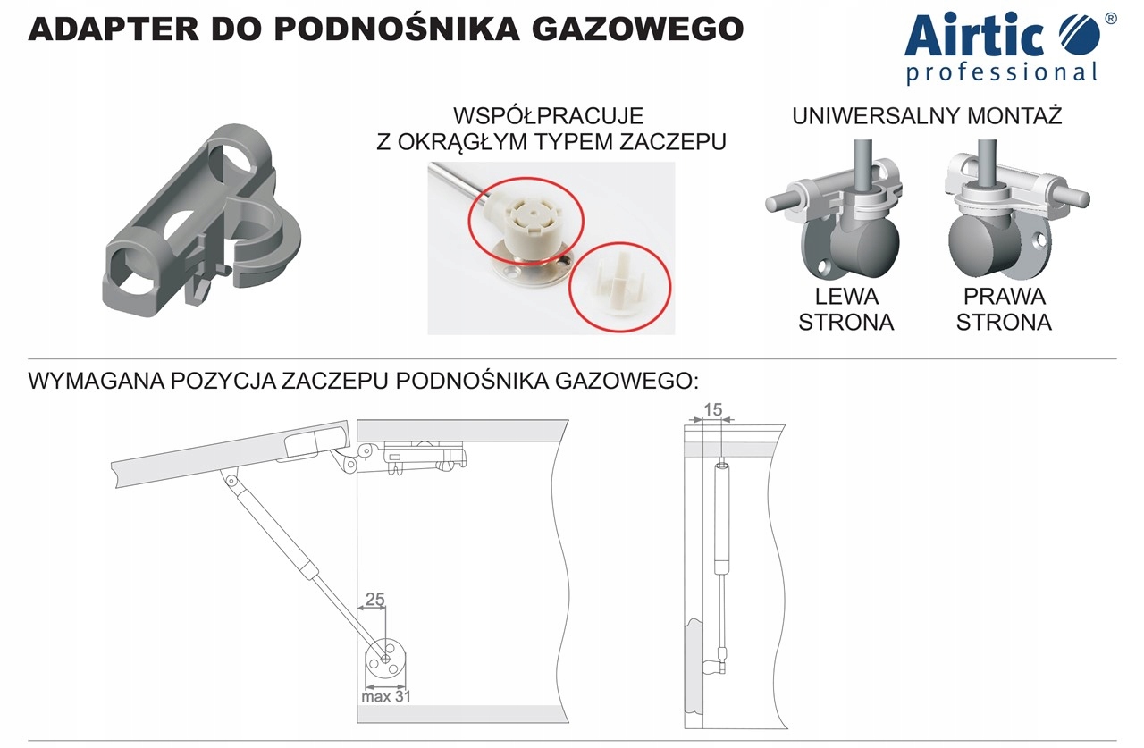 Гальмо, призначене для газліфтів (з круглою головкою!), завдяки якому ми отримуємо ефект м'якого і тихого зачинення дверей. Ми уникнемо їх злому.