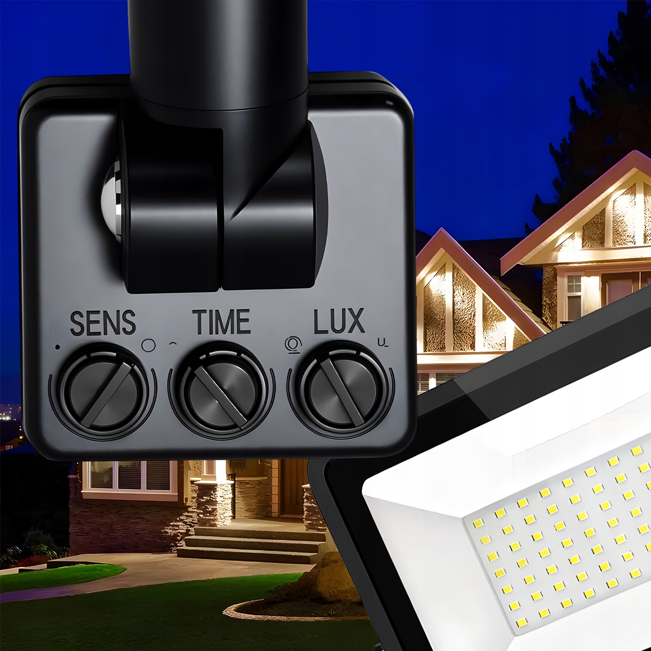 Чутливість і діапазон датчика можна регулювати за допомогою ручки SENS, розташованої на задній частині прожектора.