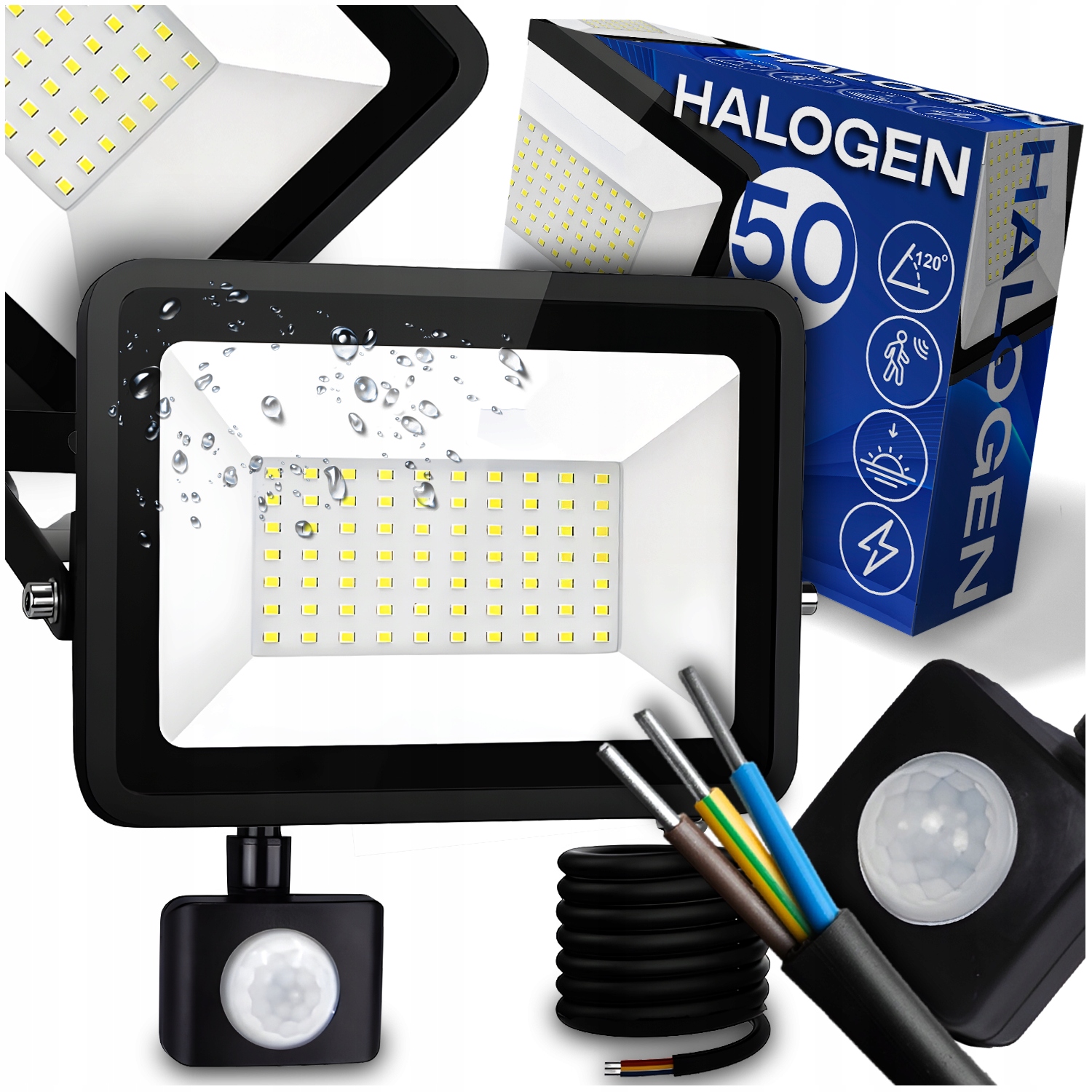 ГАЛОГЕННА СВІТЛОДІОДНА ЛАМПА РОБОЧИЙ ПРОЖЕКТОР СВІТЛОДІОДНИЙ ДАТЧИК РУХУ 50 ВТ ЗОВНІШНЯ