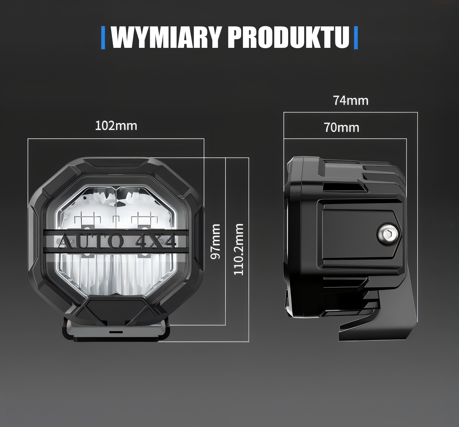 4-дюймовий світлодіодний робочий ліхтар був розроблений для роботи в складних польових умовах і майстернях. Його корпус виготовлено з алюмінію 6063 з анти-УФ-покриттям, а міцна ручка з 4 мм нержавіючої сталі забезпечує стійкість до вібрації та стабільну установку.