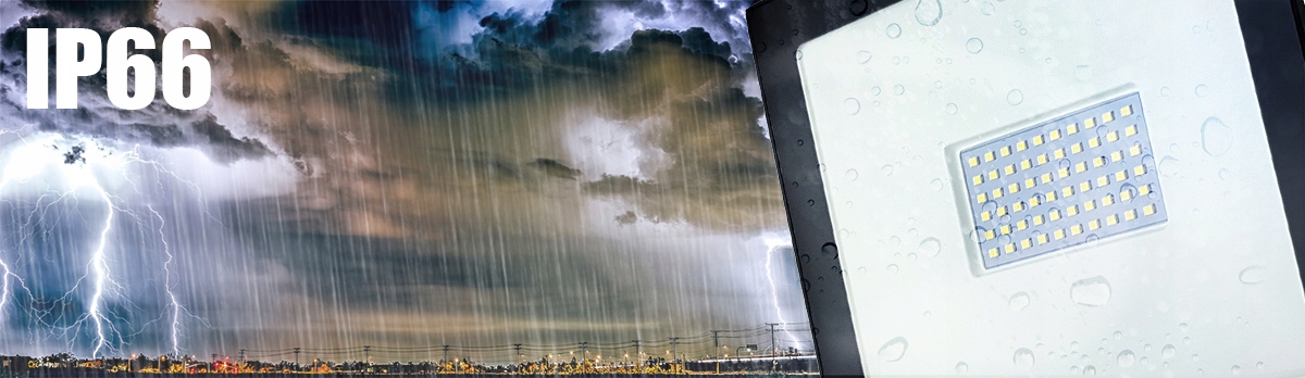 Ця інформація, включена у визначення герметичності корпусу, інформує нас про те, що корпус повністю стійкий до пилу та сильних струменів води. Нижче наведено детальне пояснення використовуваних позначок герметичності IP. Число 66 означає, що продукт повністю захищений від: предметів діаметром мін. 1,0 мм і більше, пил і сильні струмені води.Прожектор повністю стійкий до несприятливих погодних умов і підходить для зовнішньої установки