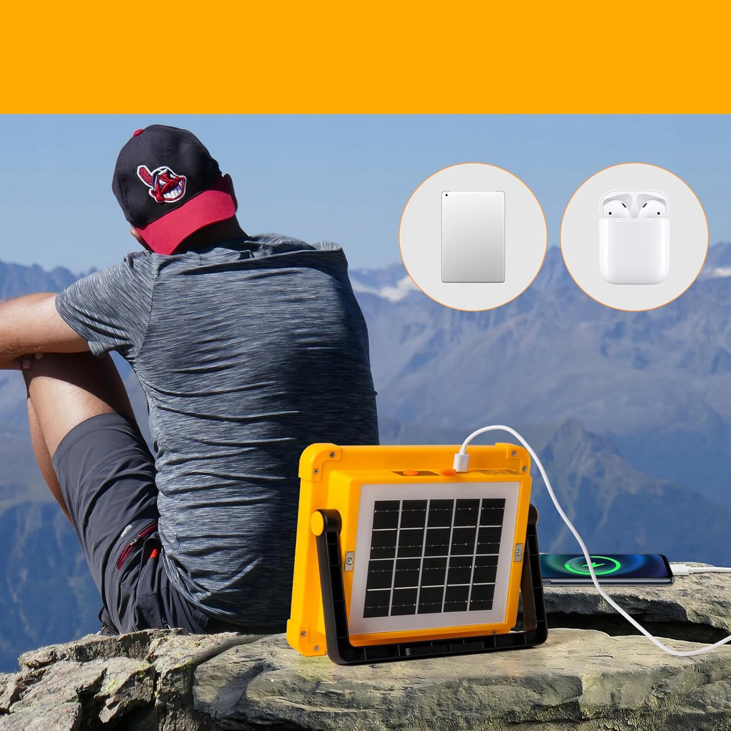 🚨🚨【Світлодіодний прожектор із сонячною батареєю та USB】Цей портативний перезаряджуваний світлодіодний робочий ліхтар із акумулятором ємністю 8800 мАг, який можна заряджати як від сонячної енергії, так і від кабелю USB, енергозберігаючий та екологічний. Можна повністю зарядити за 6-8 годин за допомогою USB-кабелю.