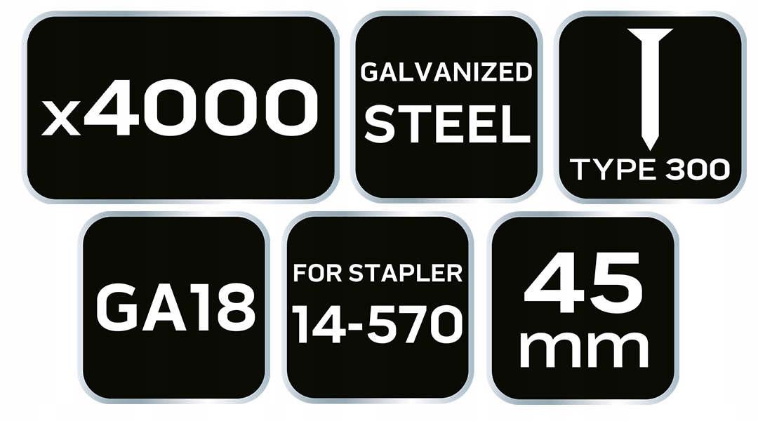 Цвяхи оцинковані до пневматичного степлера (14-570), GA18, тип 300 (F), довжина 45 мм, 4000