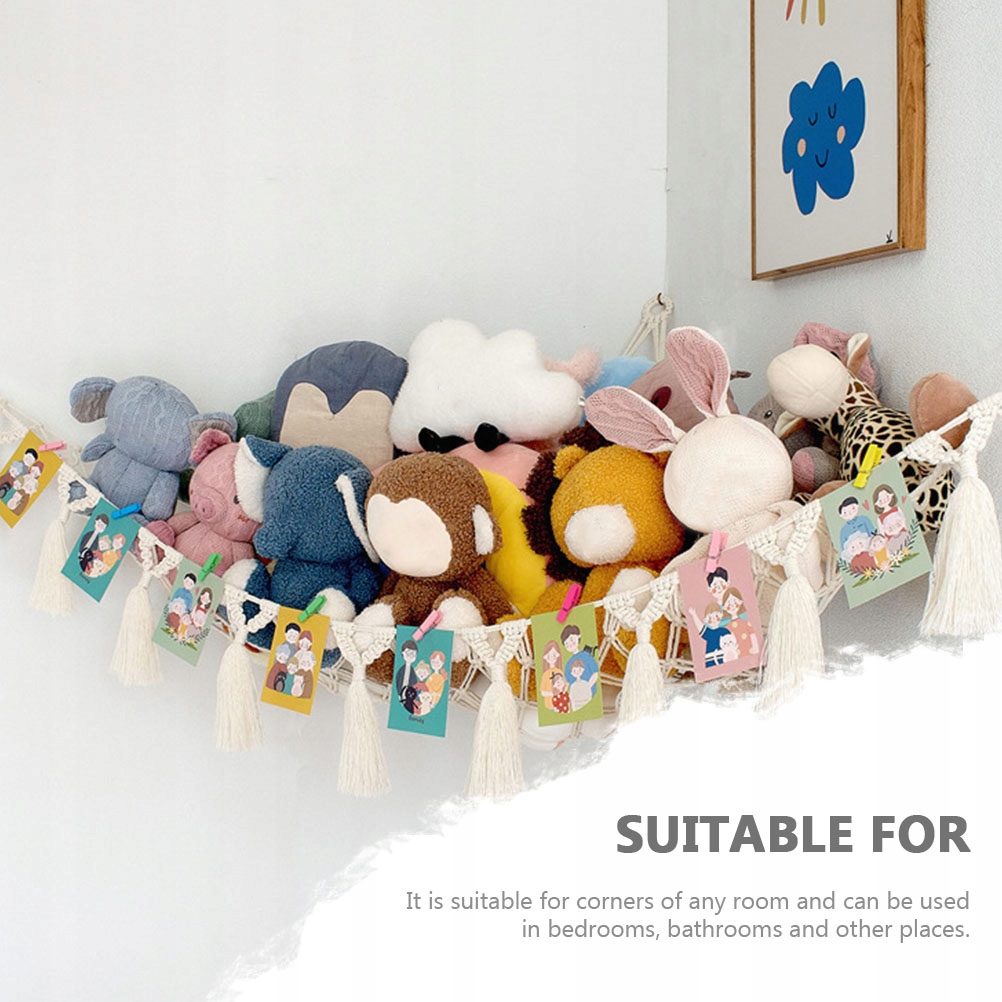 Сітка-гамак для зберігання іграшок вміщає всі м'які тваринки, які подобаються дітям.