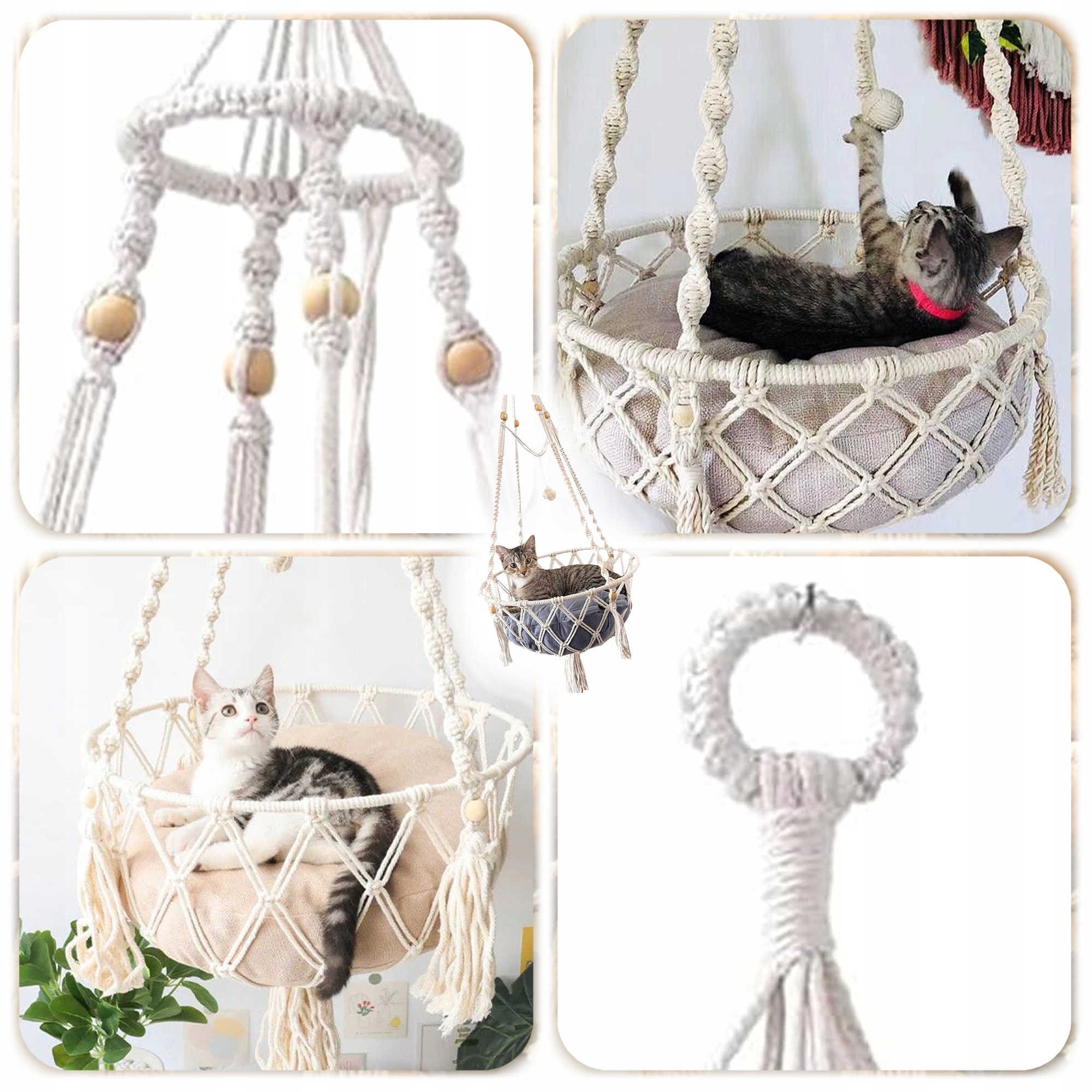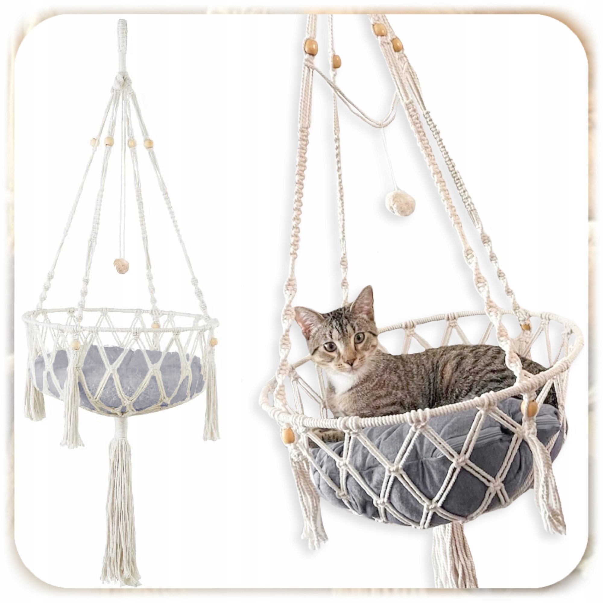 ГАМАК ПІД СТЕЛЮ BOHO MACRAME CAT BED 40x40CM + ПОДУШКА