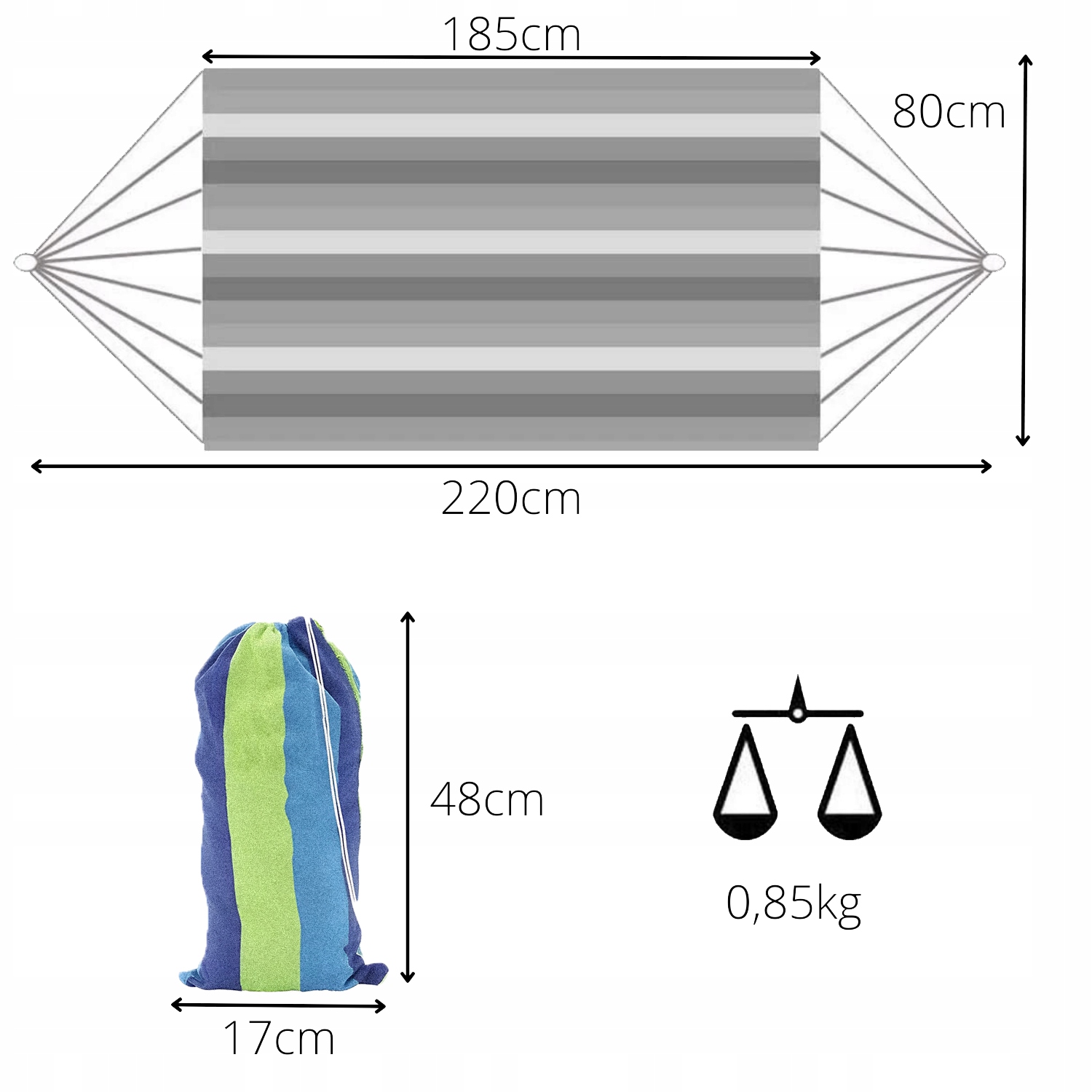 ГАМАК САДОВИЙ З РЕЙКОЮ 220x80 + БАВОВНЯНИЙ МІШОК XXL