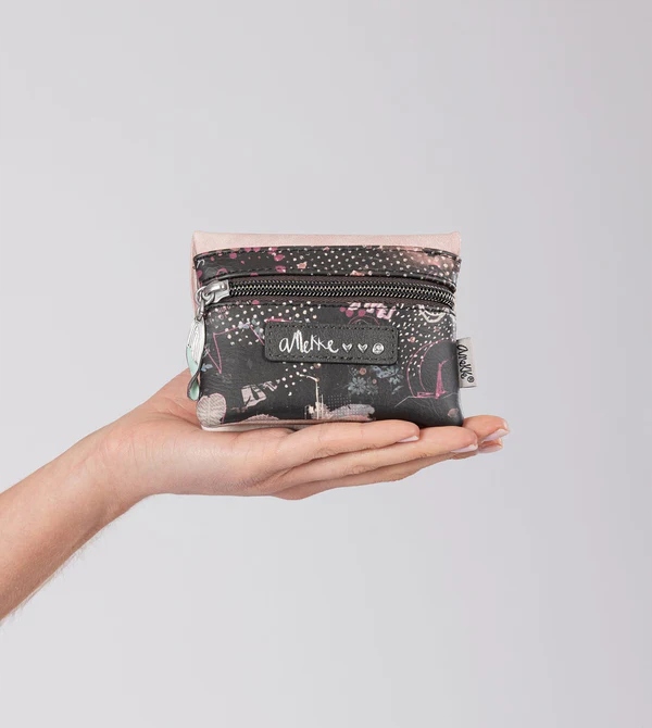 Колекція Anekke Peace Love у рожевому кольорі характеризується кольоровими контрастами з темно-сірими, білими та рожевими відтінками. Anekke з’являється на передній частині сумки з квіти у її волоссі, оточені вишивкою на рафії металевою фарбою.