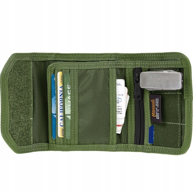 Гаманець кольору хакі - зелений гаманець, показаний на фотографіях, призначений для демонстрації розташування кишень