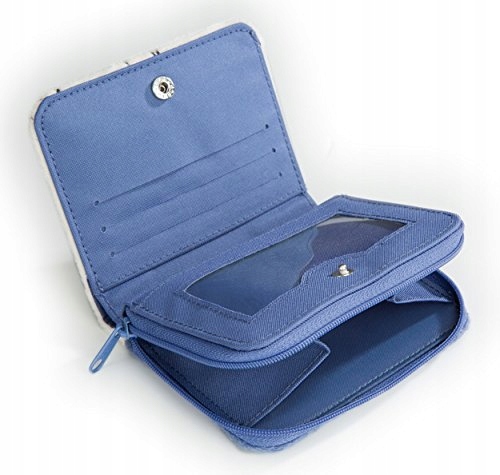Сніжний кіт усміхається на передній частині цього елегантного гаманця зробленого з плюшу Nici. Має кишеню для монет на блискавці та кишеню для банкнот і карток із застібкою.