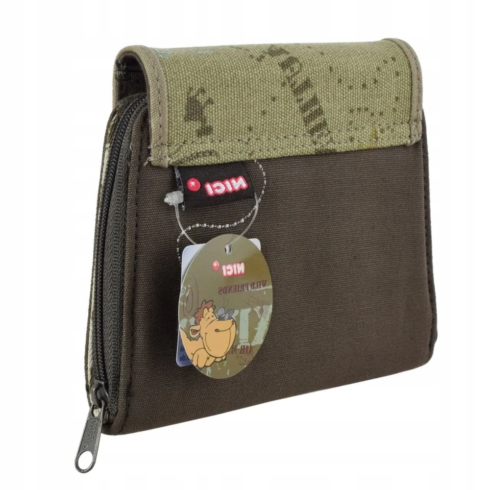 Мурашка посміхається на передній частині цього елегантного гаманця з тканини Nici. Має кишеню для монет на блискавці та кишеню для банкнот і карток.