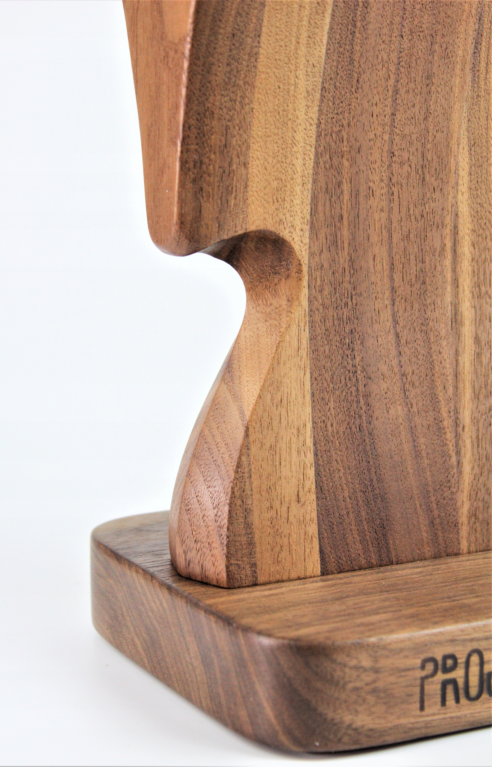 Ексклюзивна підставка для навушників, виготовлена вручну з американської деревини з волоського горіха. Деревина захищена найвищою якістю з твердою олією. Кожна стійка унікальна і відрізняється зерном. Це деревина з унікальним вигляду.