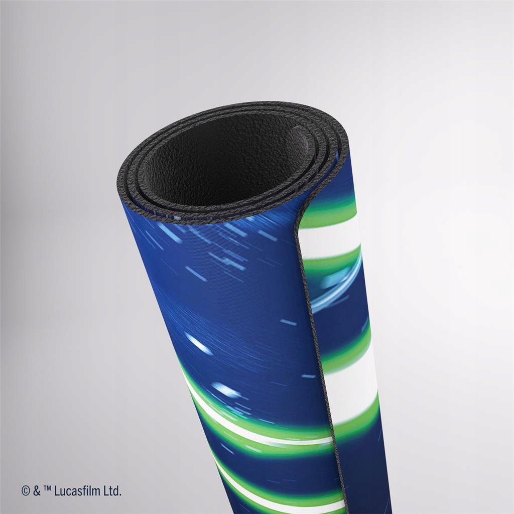 Ігровий килимок, який забезпечує простір і порядок у захоплюючій грі Зоряні війни: Необмежений. Виріб виготовлено з високоякісної протиковзкої гуми, що дозволяє насолоджуватися грою буквально де завгодно - на кухонному столі, на підлозі або на дні підземної камери. Цей килимок стане ідеальним фоном для ваших завоювань і пригод у далекій-далекій галактиці. Досвідченим гравцям сподобається унікальна високошвидкісна поверхня, яка забезпечує блискавичне обертання та плавне переміщення карт у рукавах.