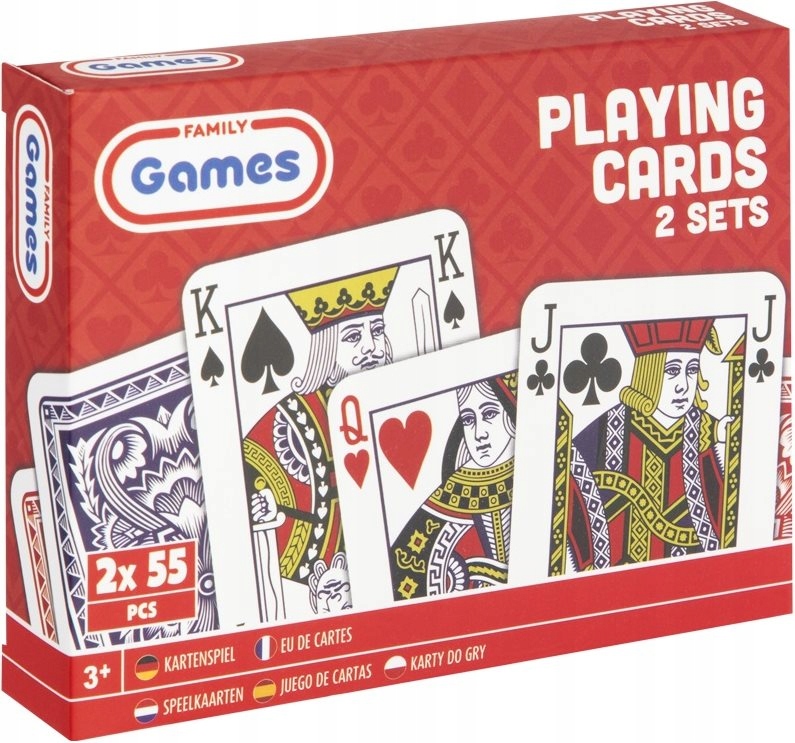 Класичні картки французького типу, придатні для гри в канаст, джокер, міст, покер або обід. Набір містить ігрові карти 2 x 55. Розмір однієї картки становить близько 8,5 х 5,5 див.