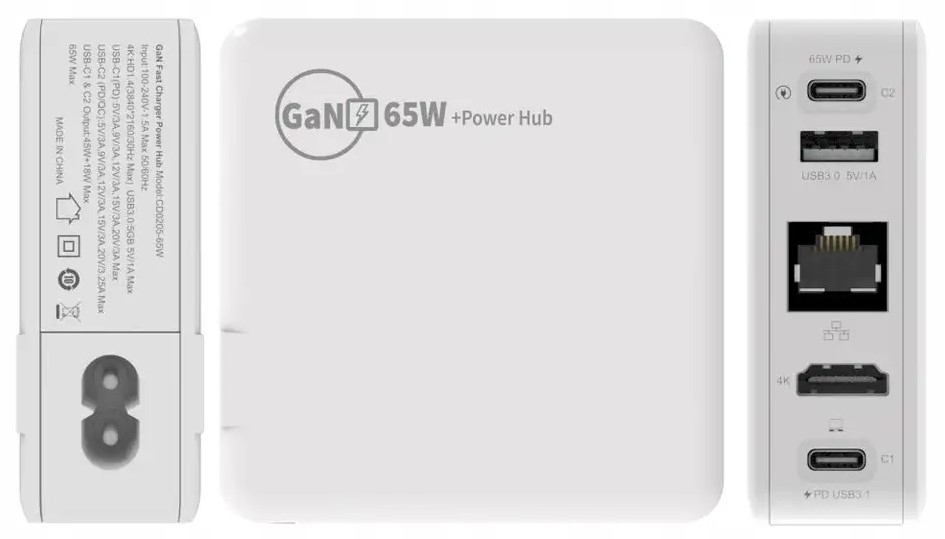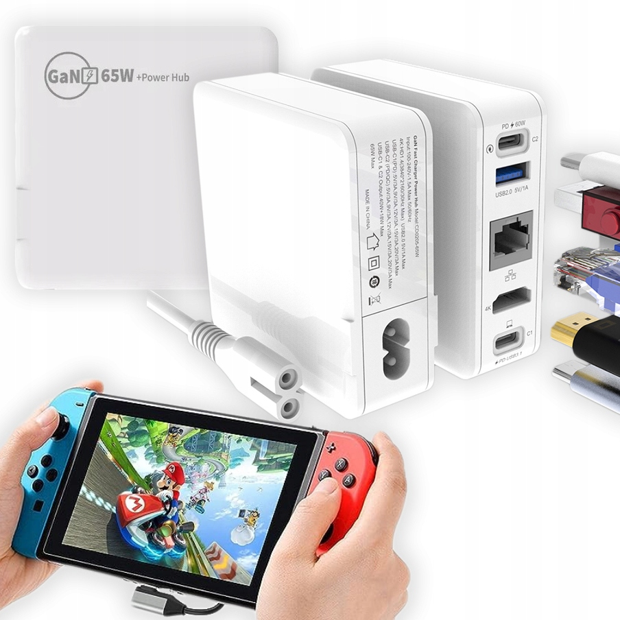 GAN 65 Вт, зарядний пристрій для ноутбука, телефону, док-станція HDMI 4K RJ45 USB C