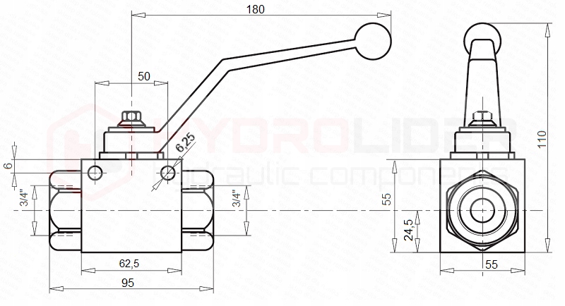 hydraulic diagram of 3/4 Кульовий клапан Droga (фото):