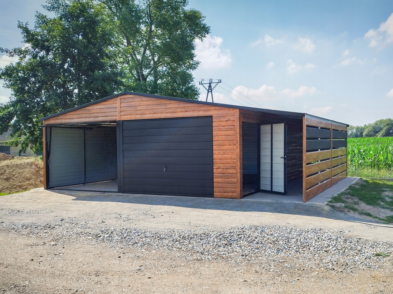 Просматривая «Деревянный жестяной гараж 8,5х4 с подсобным помещением и навесом.», вы можете быть уверены, что данный товар из каталога «Гаражи и парковочные принадлежности» будет доставлен из Польши и проверен на целостность. В цене товара, указанной на сайте, учтена доставка из Польши. Внимание!!! Товары для Евросоюза, согласно законодательству стран Евросоюза, могут отличаться упаковкой или наполнением.