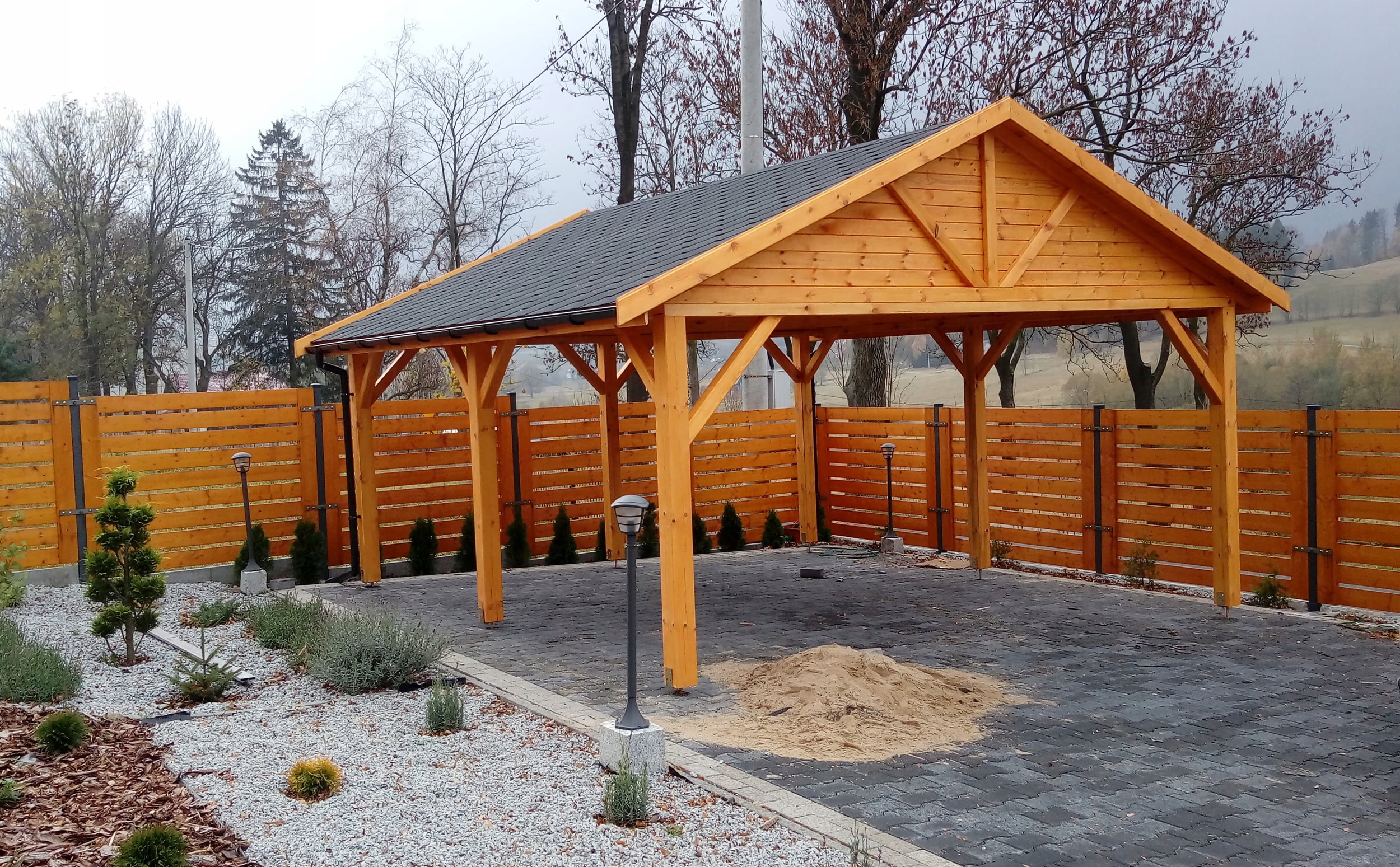 Вам потрібен додатковий дах перед будинком? Ось наша пропозиція! Дерев'яний сарай, який можна використовувати як гараж або просто дах, під яким можна сховати, наприклад, дрова на зиму. Накриття розміром 5х5 м, виготовлене з сосни, двічі просочене Drewnochron, завдяки чому деревина стане міцнішою та стійкішою до погодних умов. Колір просочення на вибір : зелений, японська вишня, венге, тик, сірий, сосна натуральна, сосна, палісандр середній, палісандр, горіх темний, червоне дерево, дуб темний, дуб, кедр. Шаблон на одному з фото.