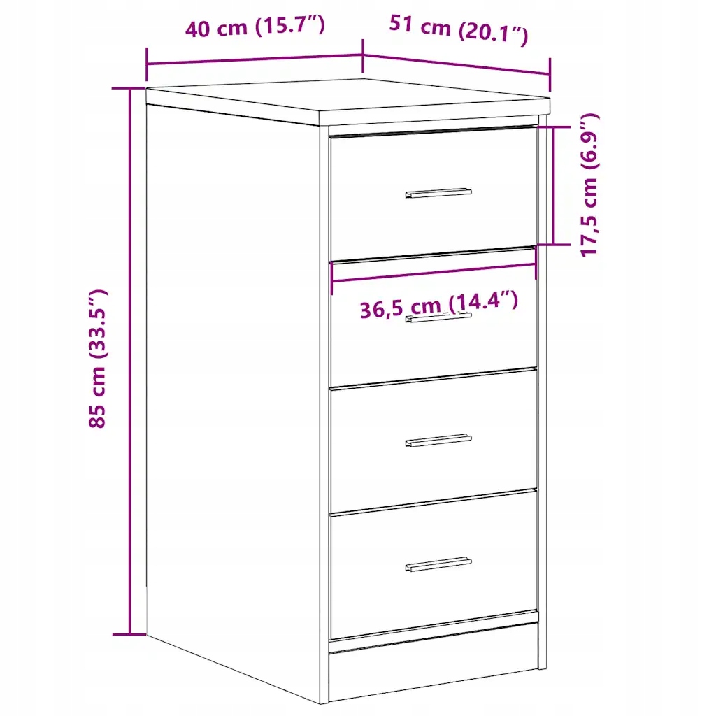 - Розміри: 40 x 51 x 85 см (Ш x Г x В)