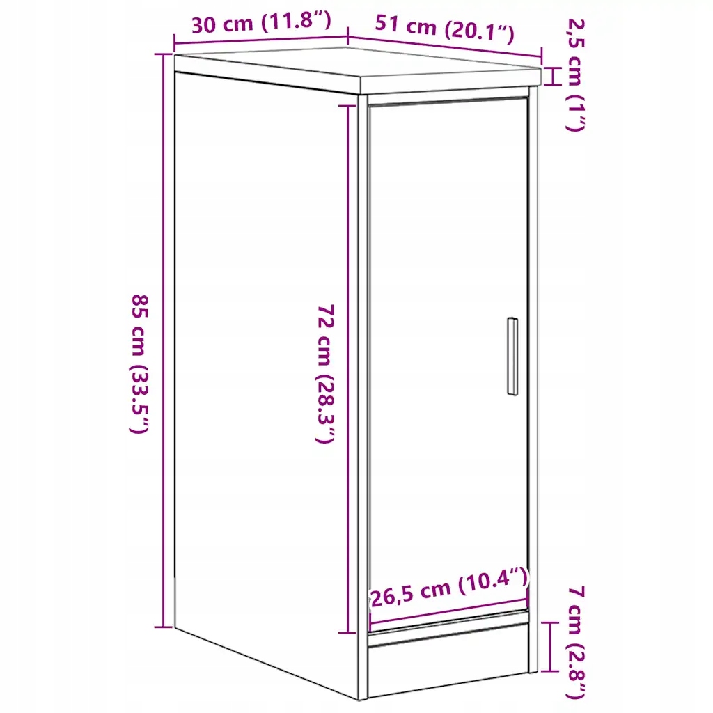 - Розміри: 30 x 51 x 85 см (Ш x Г x В)