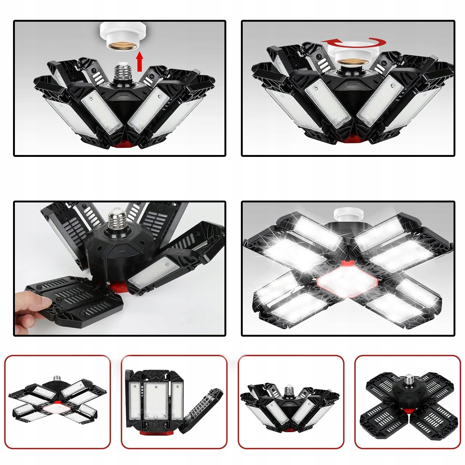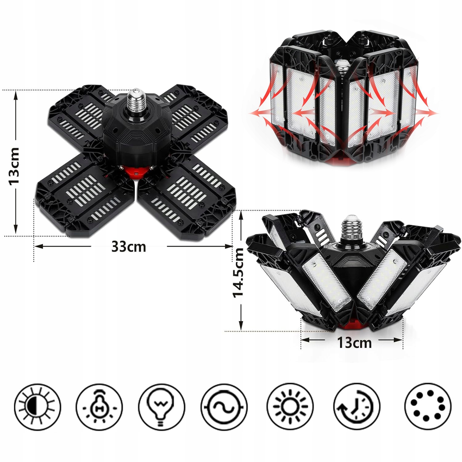 Гаражні світлодіодні світильники e27 18000 lm 12 регульованих панелей світла 6000-6500k