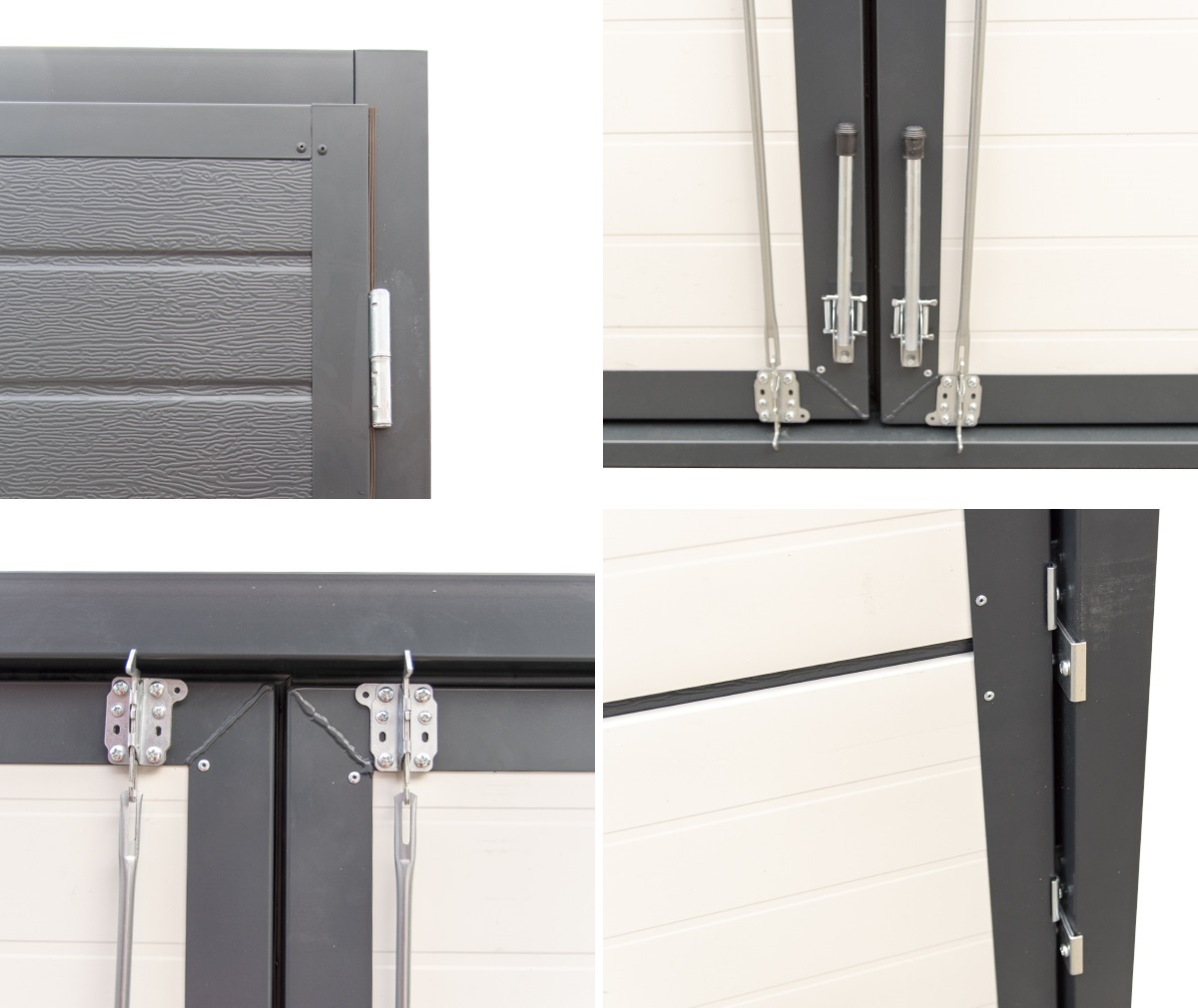 Полотно заповнюється панеллю воріт товщиною 40 мм. Ворота відкриваються лише за межі кімнати.