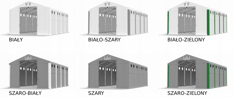 Намети збираються з модулів довжиною 2, 4, 6, 8, 10 або 12 м і подовжувачів 1 або 2 метри.