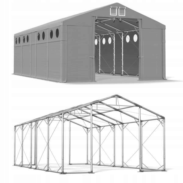 Конструкція оснащена додатковими товстими сталевими бічними та даховими натяжними тросами, закріпленими на стяжках. Це рішення додає довговічності та захищає намет від деформації. Це також додатковий захист від поганих погодних умов.