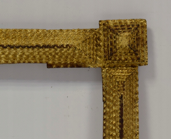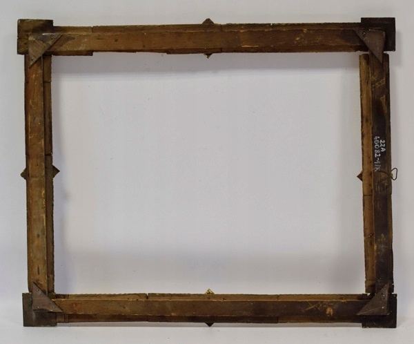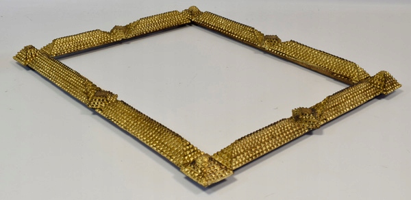 Стара декоративна дерев’яна рама в оригінальному стані, покрита шлагметалом із сусального золота. Візуальний стан рами хороший, це видно на фотографіях нижче.
