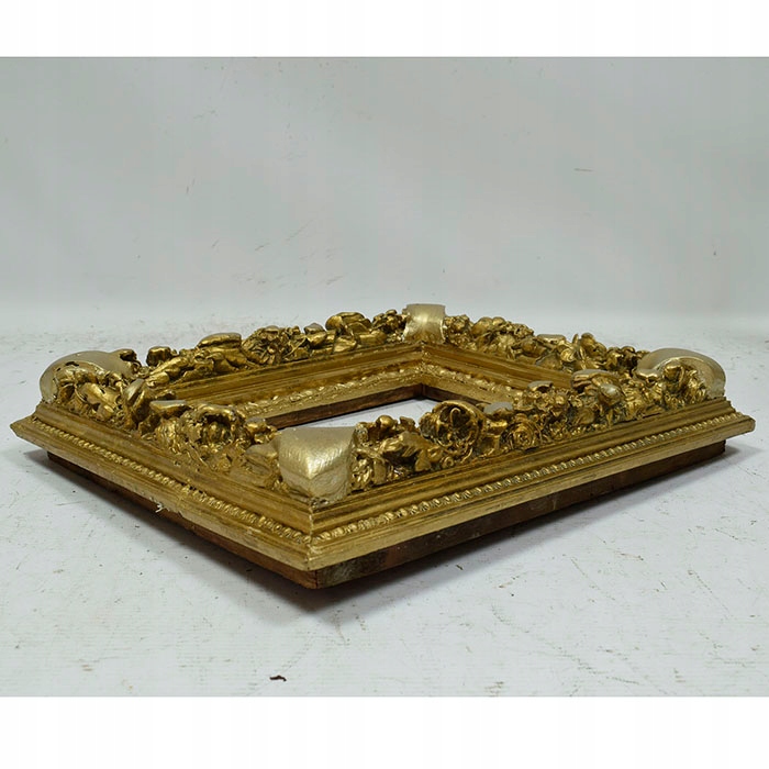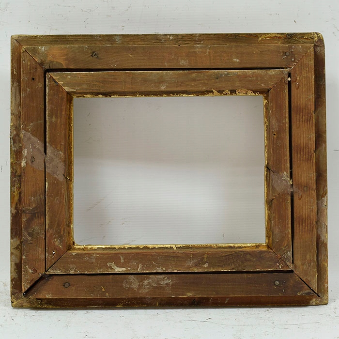 Стара, декоративна дерев’яна рама в оригінальному стані, частково пофарбована золотою фарбою.