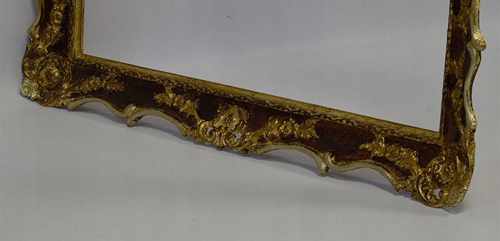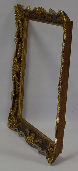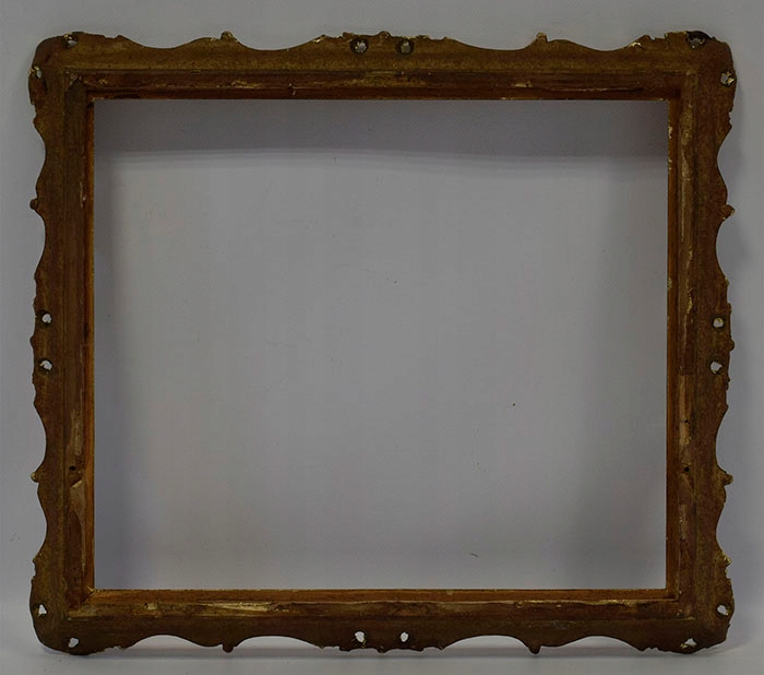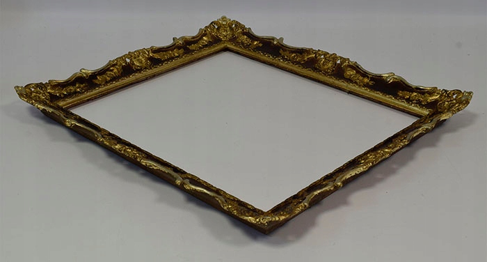 Стара декоративна дерев'яна рама, пофарбована золотою фарбою та вкрита шматочками шлагметалу. Візуальний стан рами хороший, це видно на фотографіях нижче.