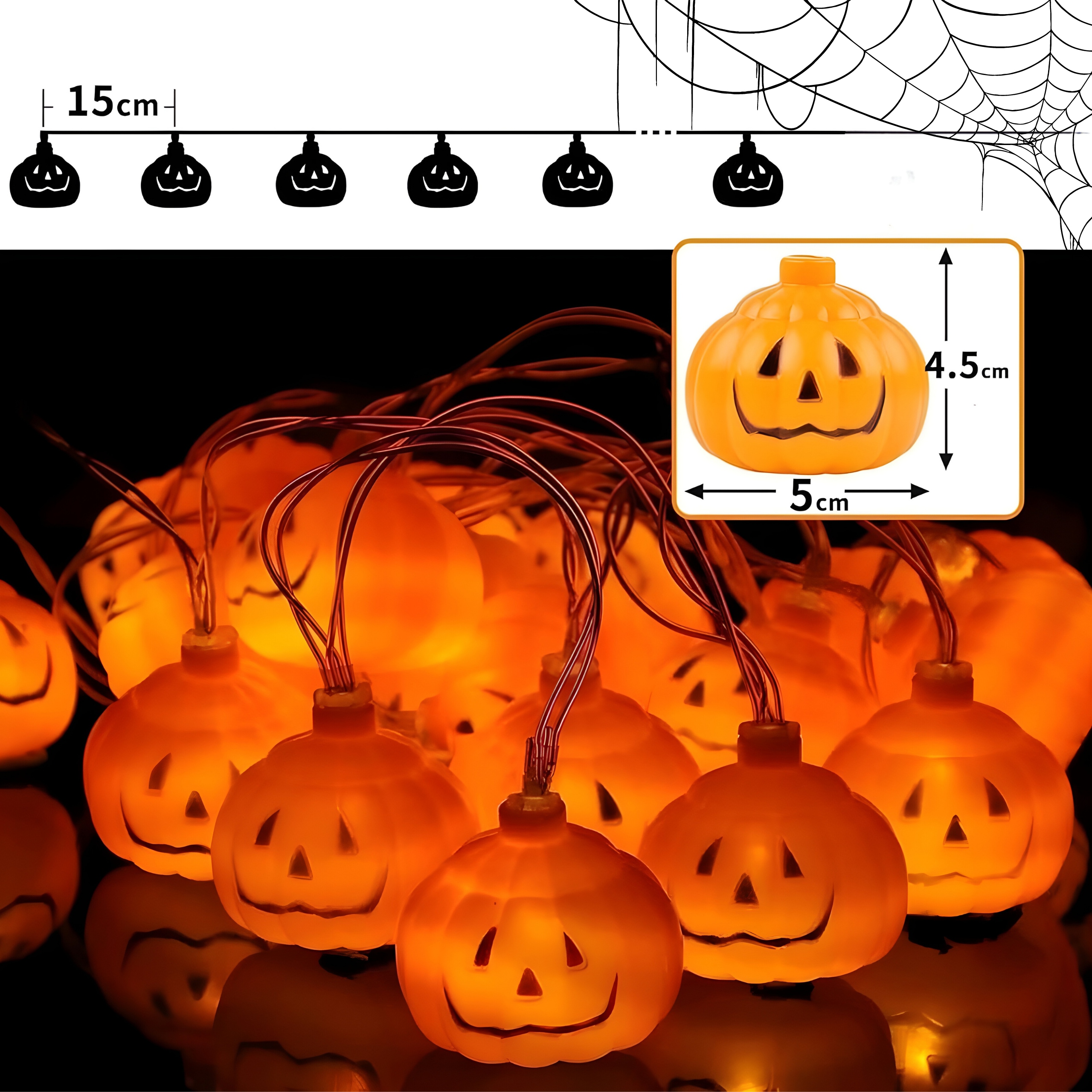 СВІТЛОВІ ЛАМПИ-ГАРБУЗИ 20 СВІТЛОДІОДІВ ПІДВІСНІ ДЕКОРАЦІЇ НА ХЕЛОВІН ДЕКОРАЦІЯ ДРОТА 3 М