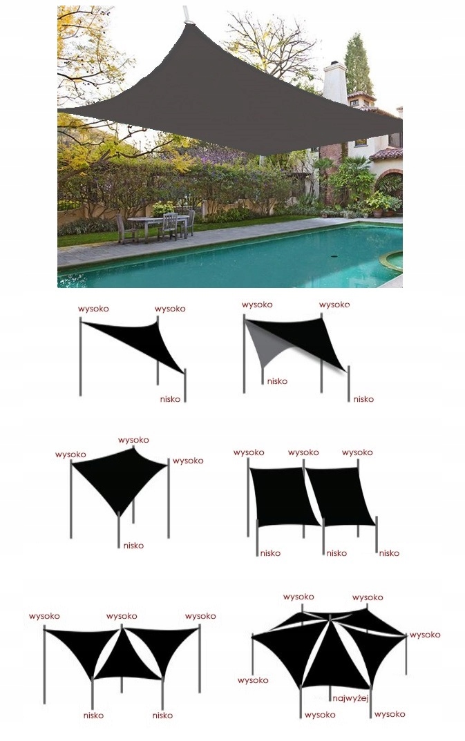 - ☀️ Накриття для басейну: у випадку басейну або гідромасажну ванну можна використовувати тіньове вітрило, щоб створити кришку над водою, захищаючи від надмірного нагрівання води сонячними променями та створюючи тінь для людей, які відвідують басейн.