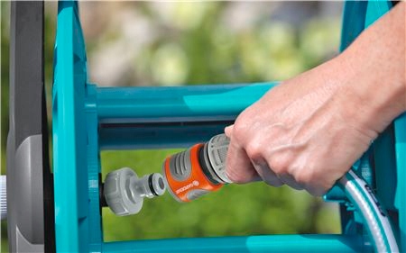 Котушка для шланга вміщує до 60 метрів шланга 13 мм (1/2"), 50 метрів шланга 15 мм (5/8") або 35 метрів шланга 19 мм (3/4") GARDENA Classic Настінна котушка для шланга оснащена з’єднувальними з’єднаннями для кранів.Однак, якщо потрібен більший потік води, бочку можна легко під’єднати до системи GARDENA Profi за допомогою з’єднання з краном Profi (арт. № 2801).