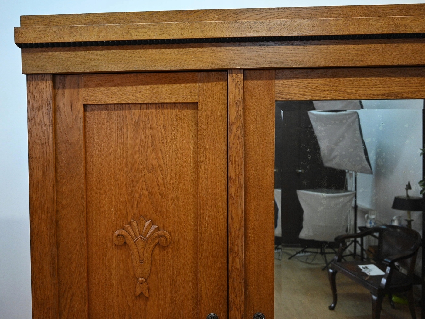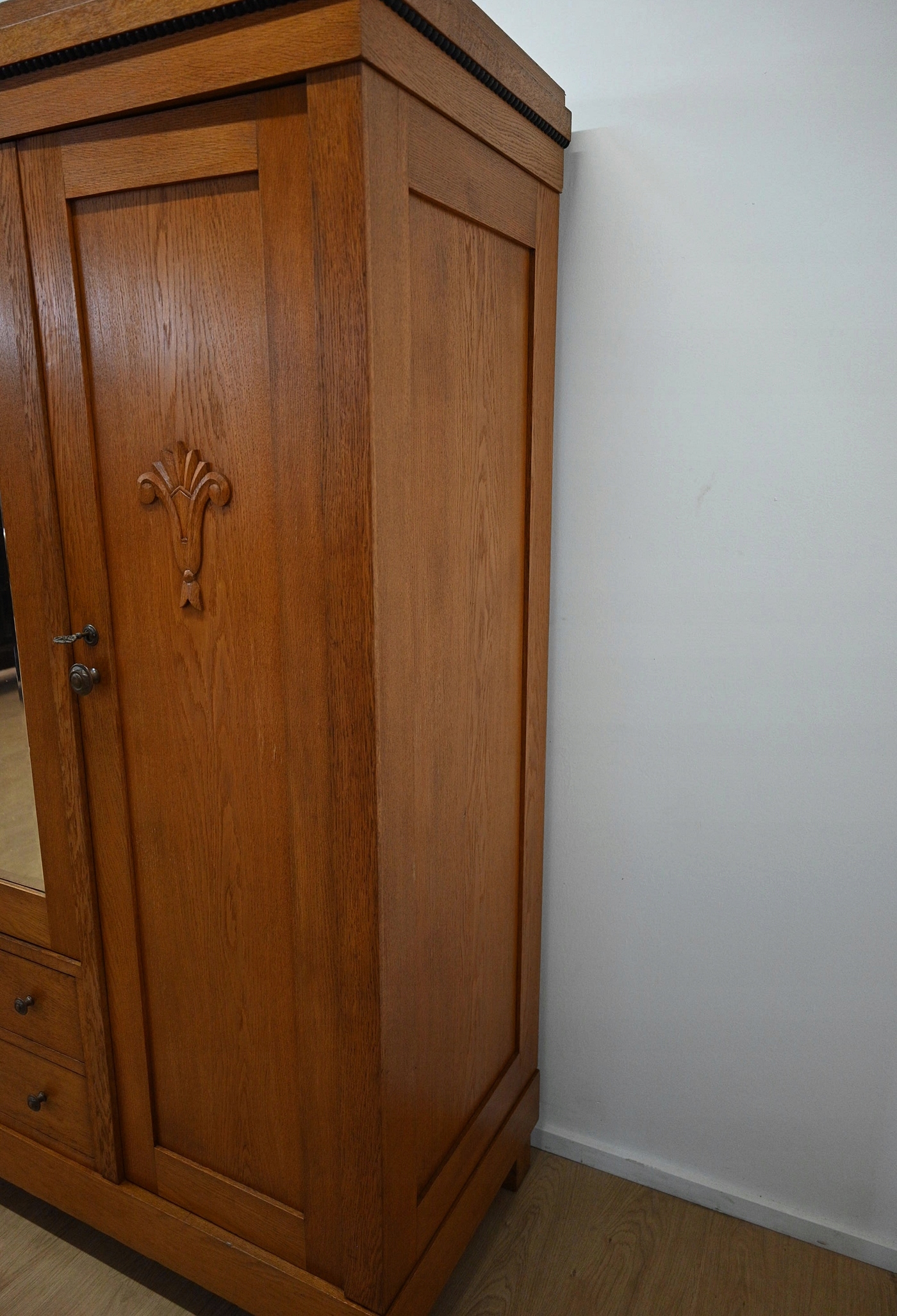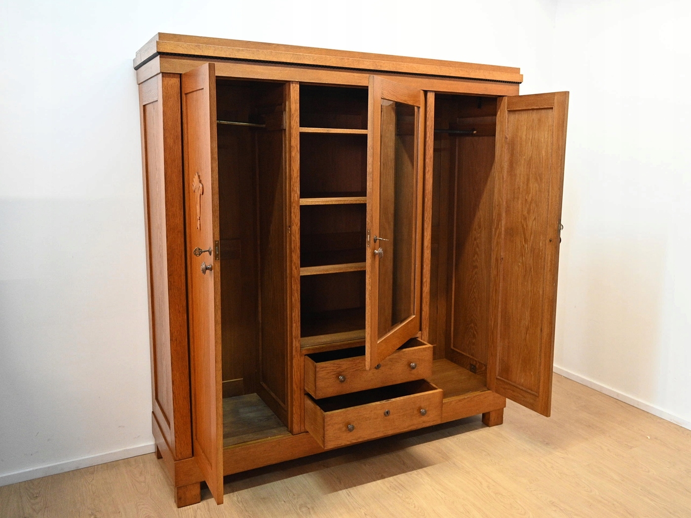 Дуже хороший стан. Меблі, підготовлені до використання. Зовнішні поверхні та центр меблів були оновлені. Меблі вже мають свої роки та сліди минулого часу, що не впливає на його естетичний прийом, вони є свідченням справжності меблів. Гардероб можна негайно поставити в квартиру.