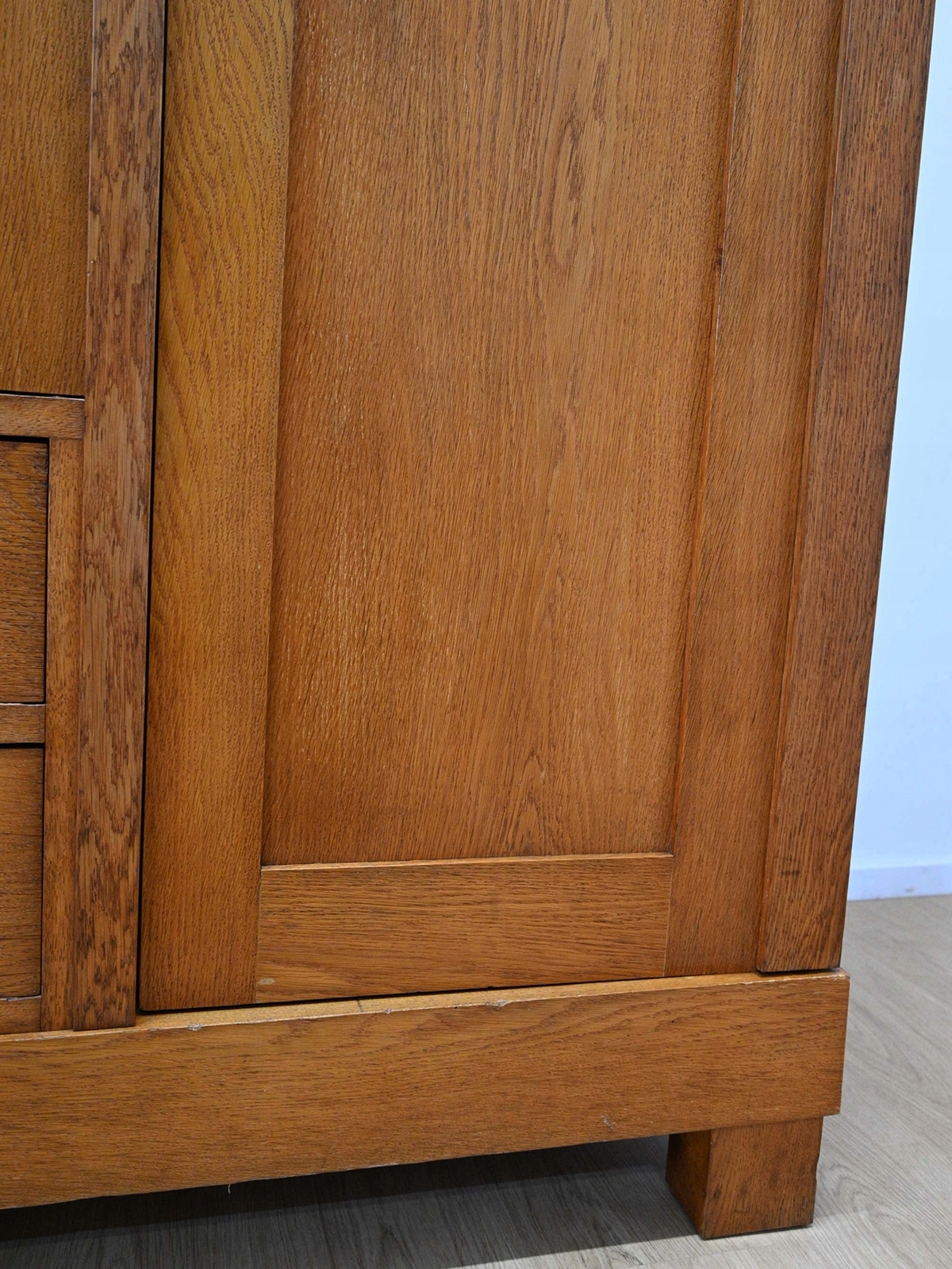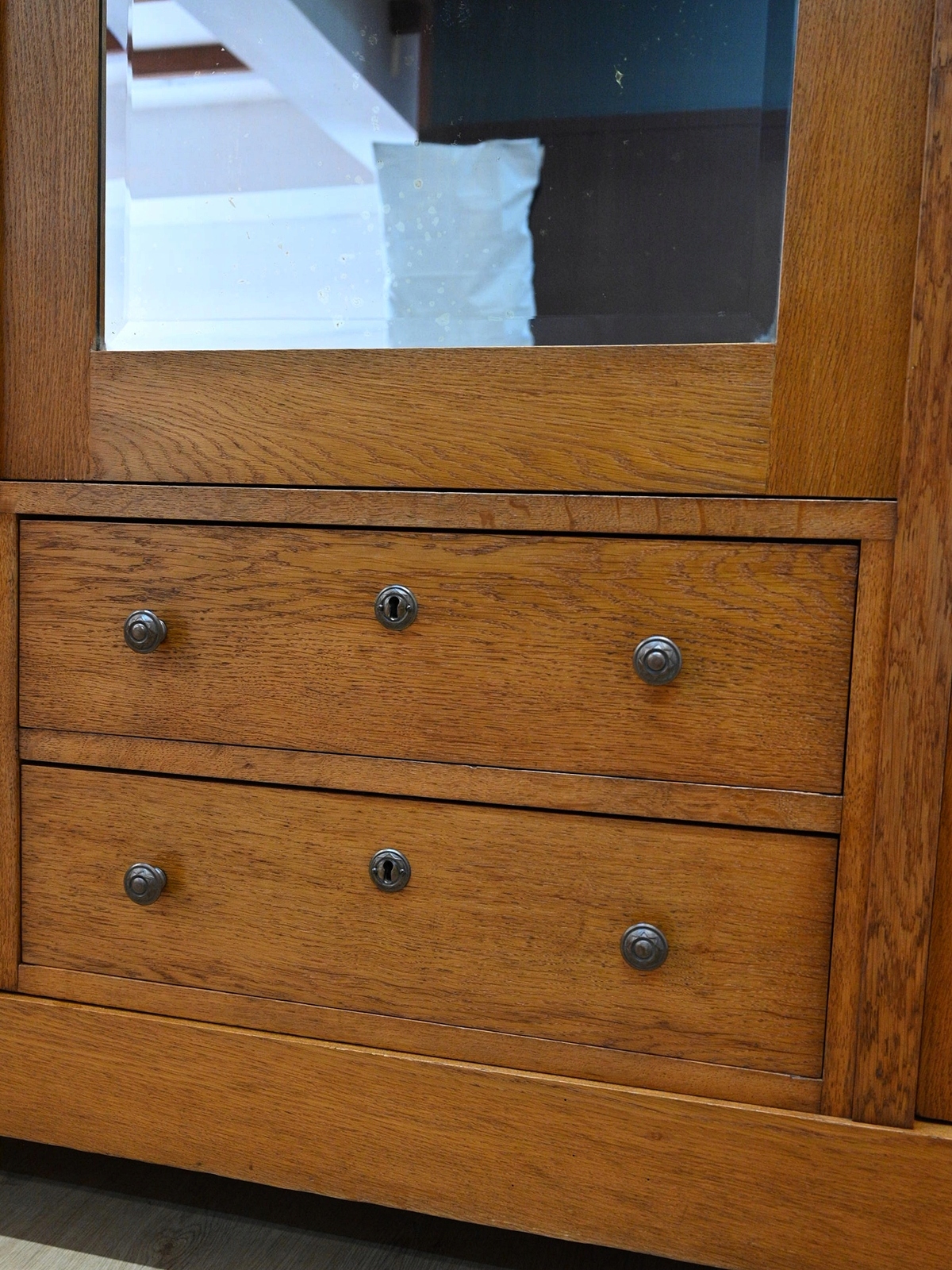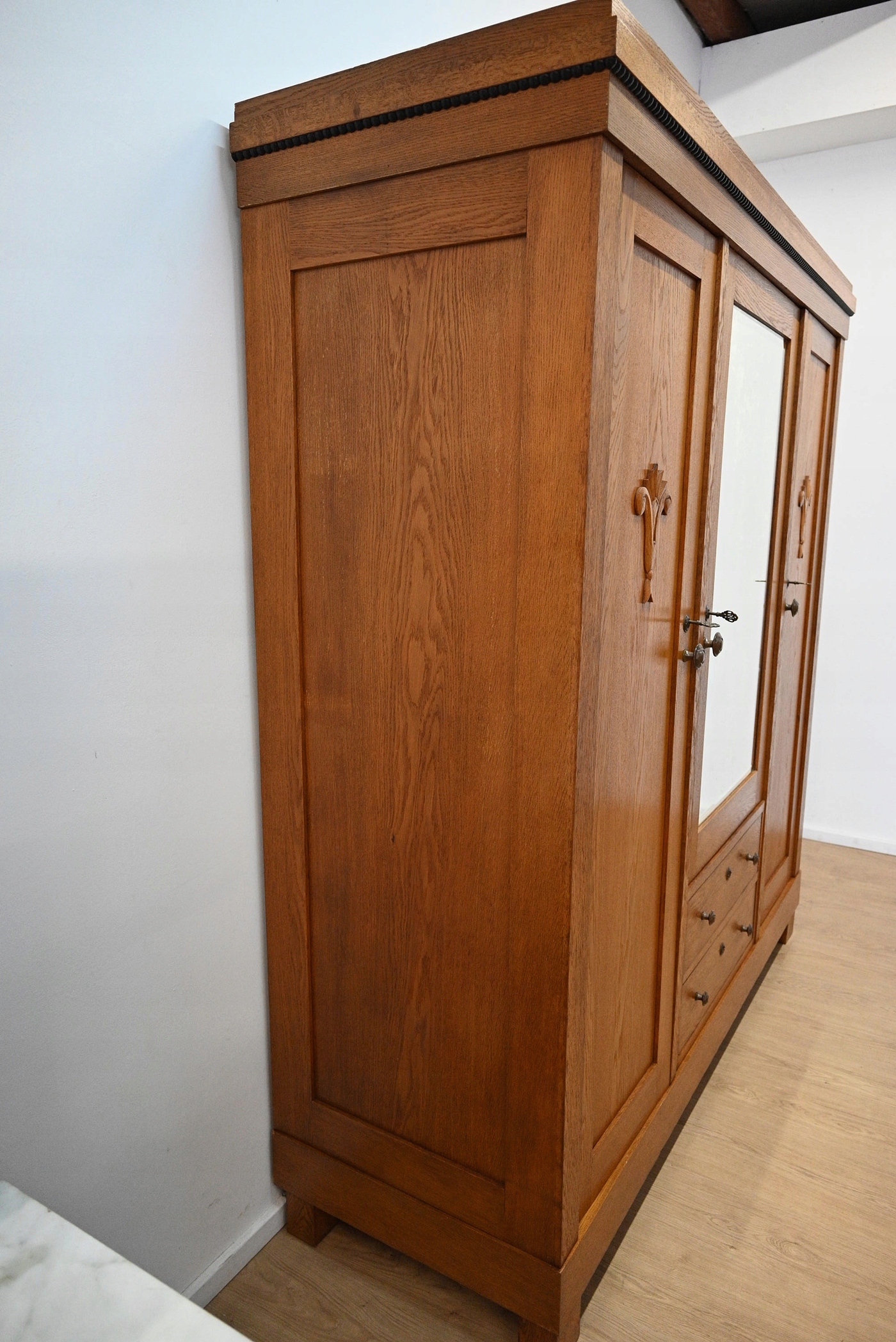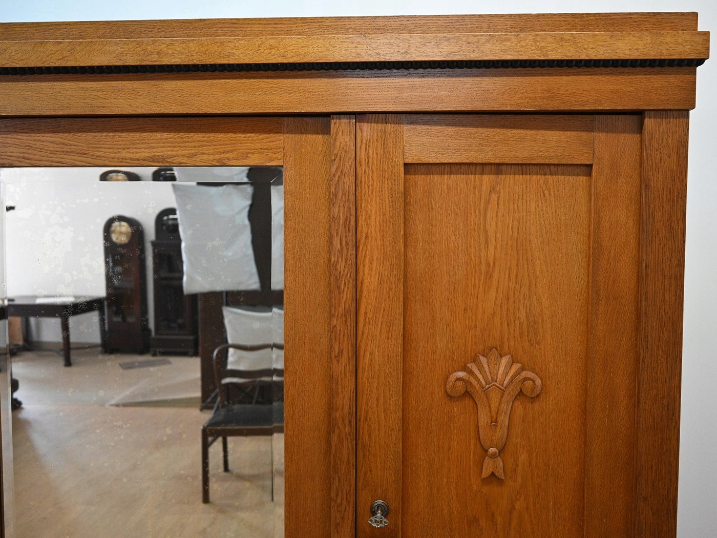 Дуже хороший стан. Меблі, підготовлені до використання. Зовнішні поверхні та центр меблів були оновлені. Меблі вже мають свої роки та сліди минулого часу, що не впливає на його естетичний прийом, вони є свідченням справжності меблів. Гардероб можна негайно поставити в квартиру.