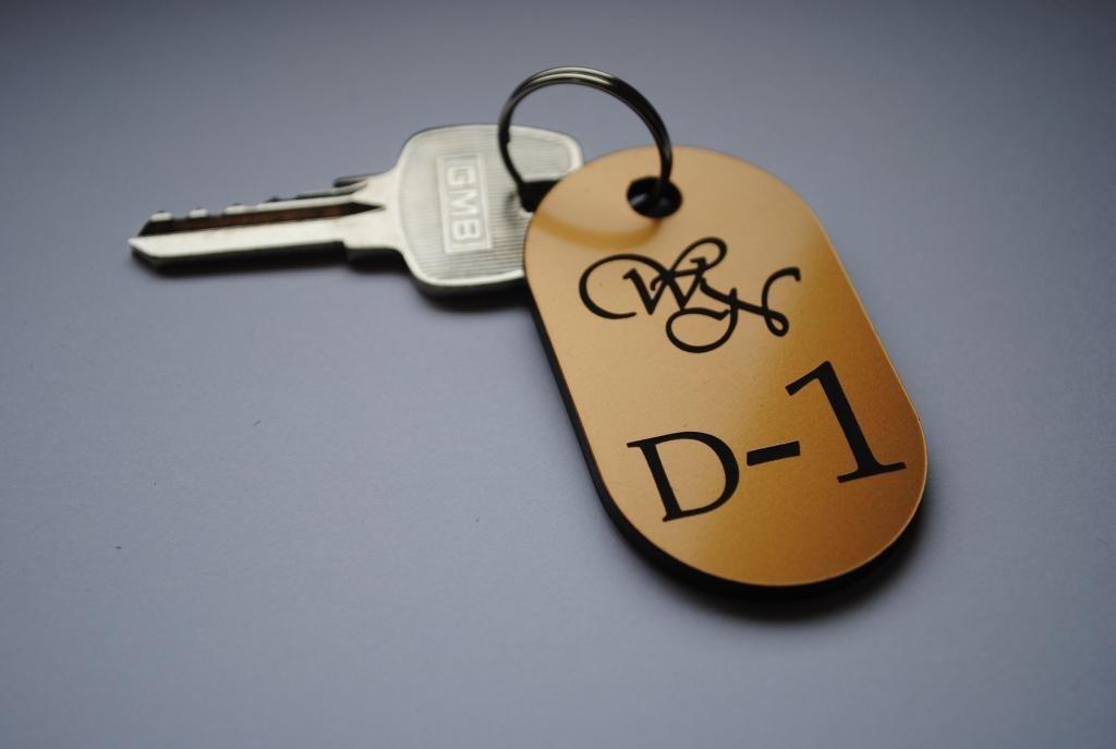 Ми також можемо вигравірувати логотип або текст на брелоках (наприклад, назву готелю).