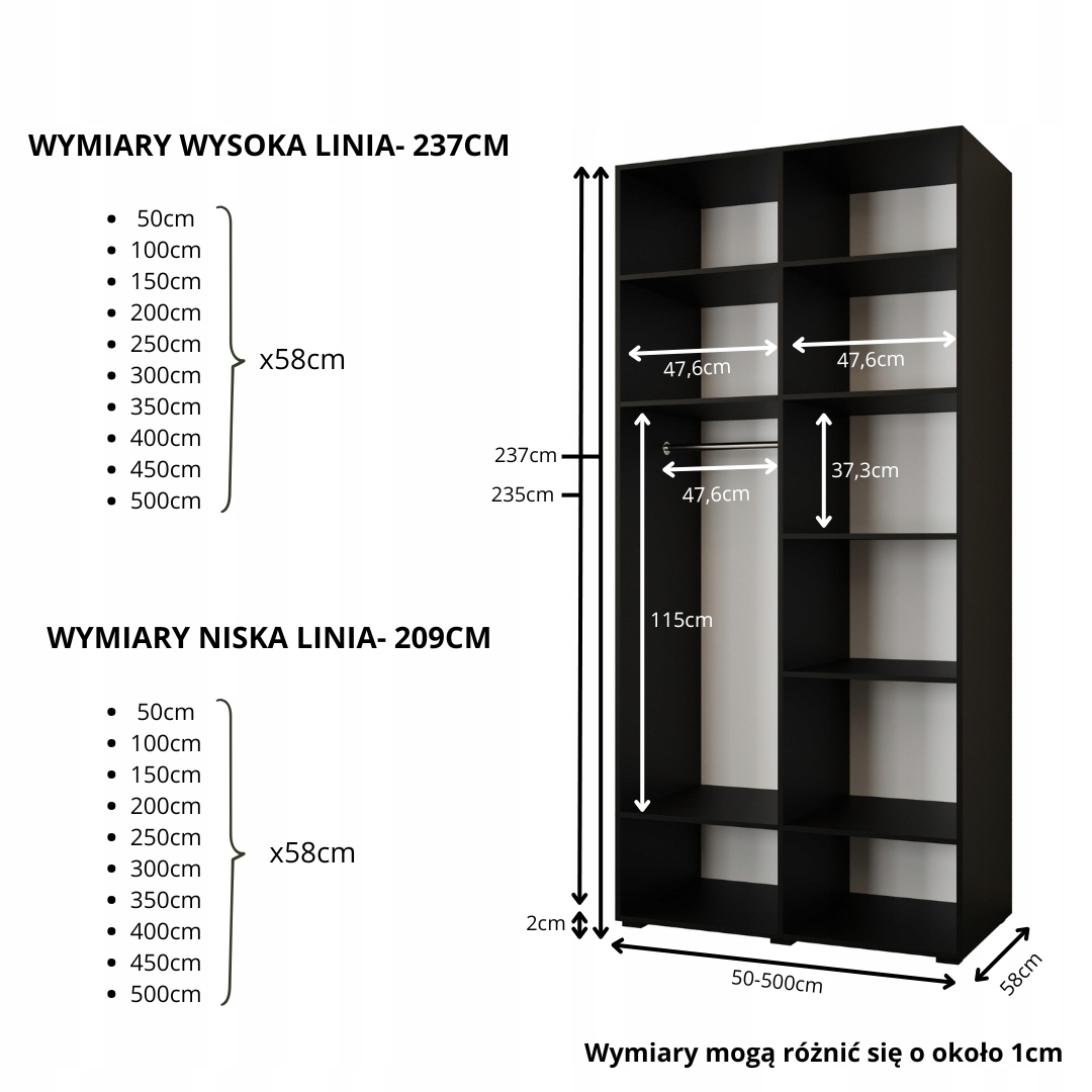 Гардероб відкрив 100x60x237 Чорний з дзеркалом - Преміум -стиль - Тихе закриття