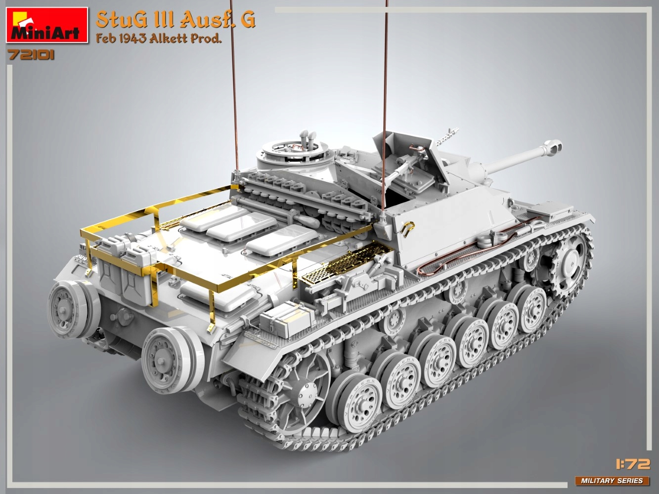 Набір пластикової моделі, масштаб 1:72, броньованої гармати StuG Sturmgeschutz III Ausf.G, лютий 1943 р. виробництва Alkett, часів Другої світової війни.