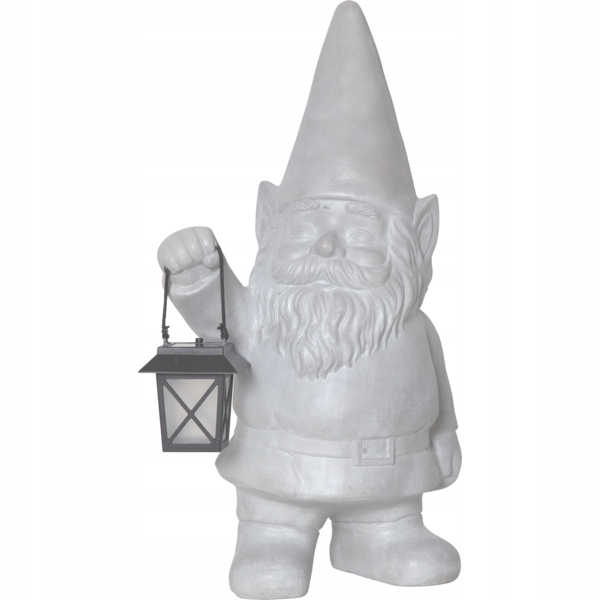 Великий садовий гном з світлодіодним підсвічуванням, живиться від сонячної енергії, цементно-сірого кольору. Гномик досить важкий, тому не варто боятися, що він впаде. Це красиво виглядає в саду.