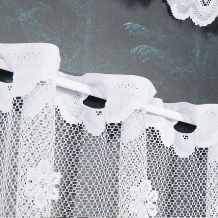 Ніжна жакардова штора на метр, висота 40смбілого кольору. Зверху має отвори для вставлення палички або палиці. Красивий візерунок з ніжними квітами в стилі ретро.