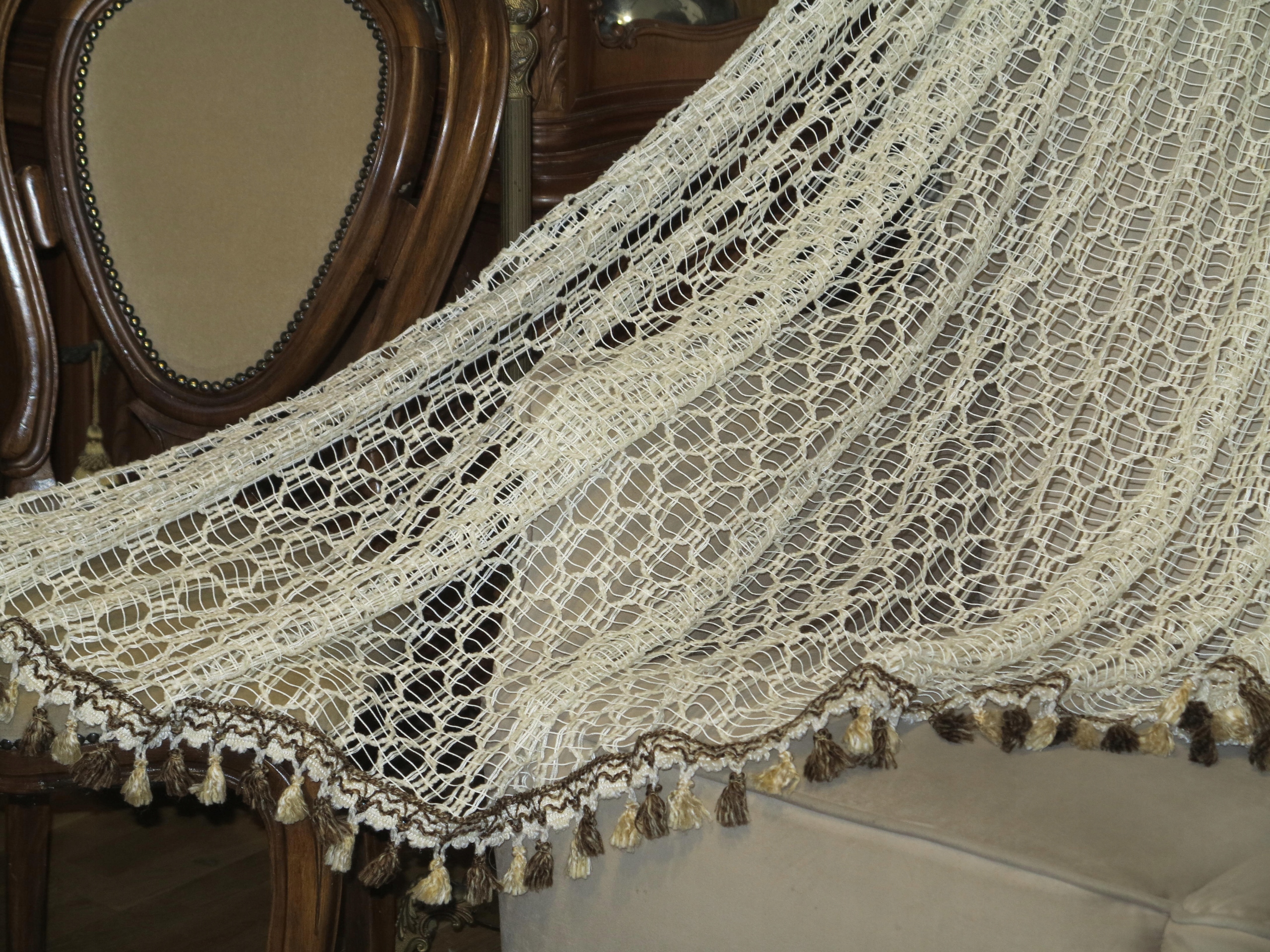ДО САДИБИ - ЧУДОВУ ШТОРУ, ЗРОБЛЕНУ ПОВНІСТЮ З НІМЕЦЬКОГО ЩІЛЬНОГО ЩІЛЬНОГО, ЩИРНОГО МЕРЕЖИВА, ЩО СПАДАЄ. КОЛІР ЕКРЮ.
