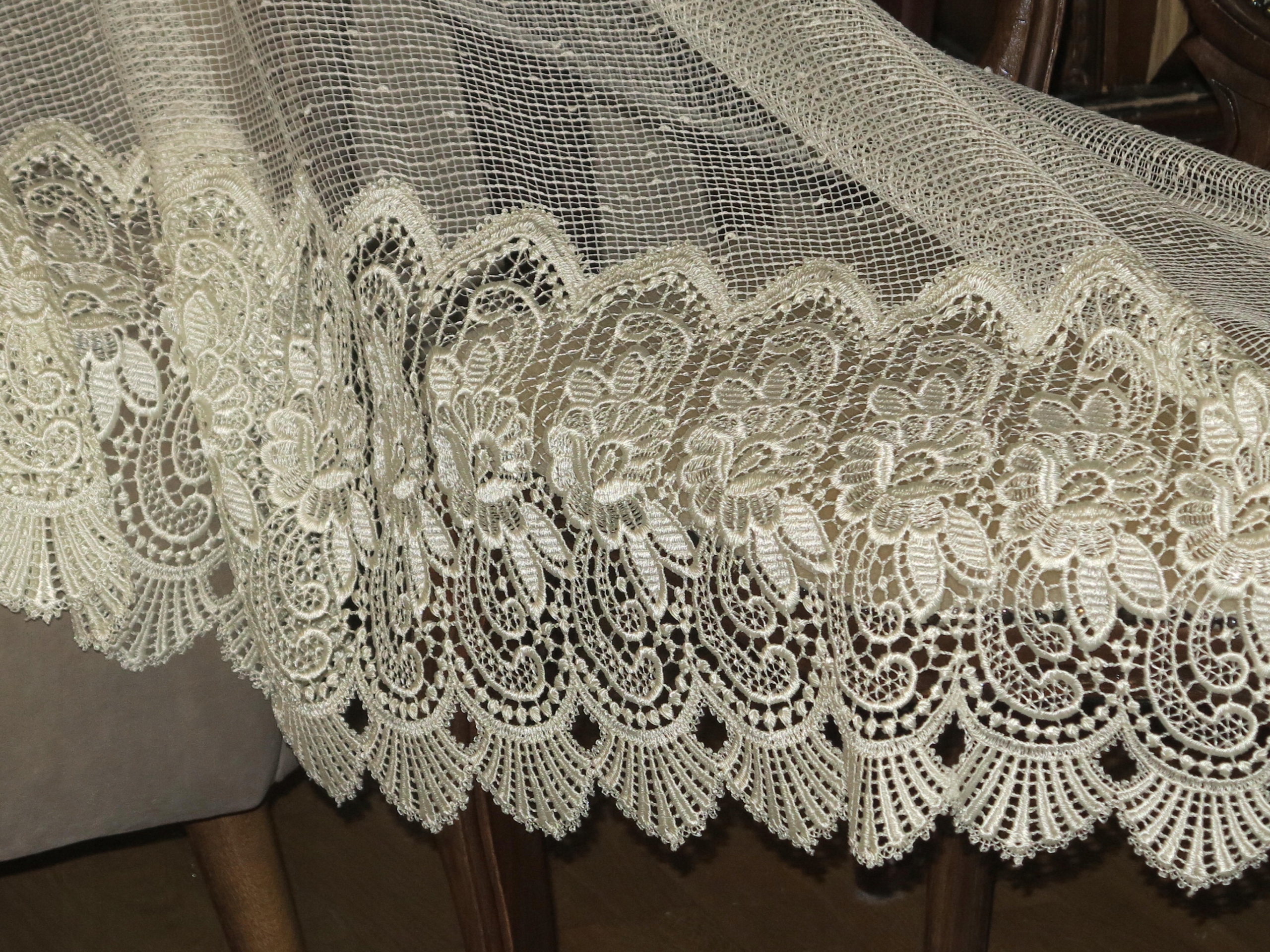Предмет аукціону - надзвичайно красива штора з перламутровим гіпюром, виготовлена з тонкої, струмуючої сітки. Колір дуже світлий перламутровий екрю. Штора б/в, в дуже хорошому стані та якості. Рекомендую.