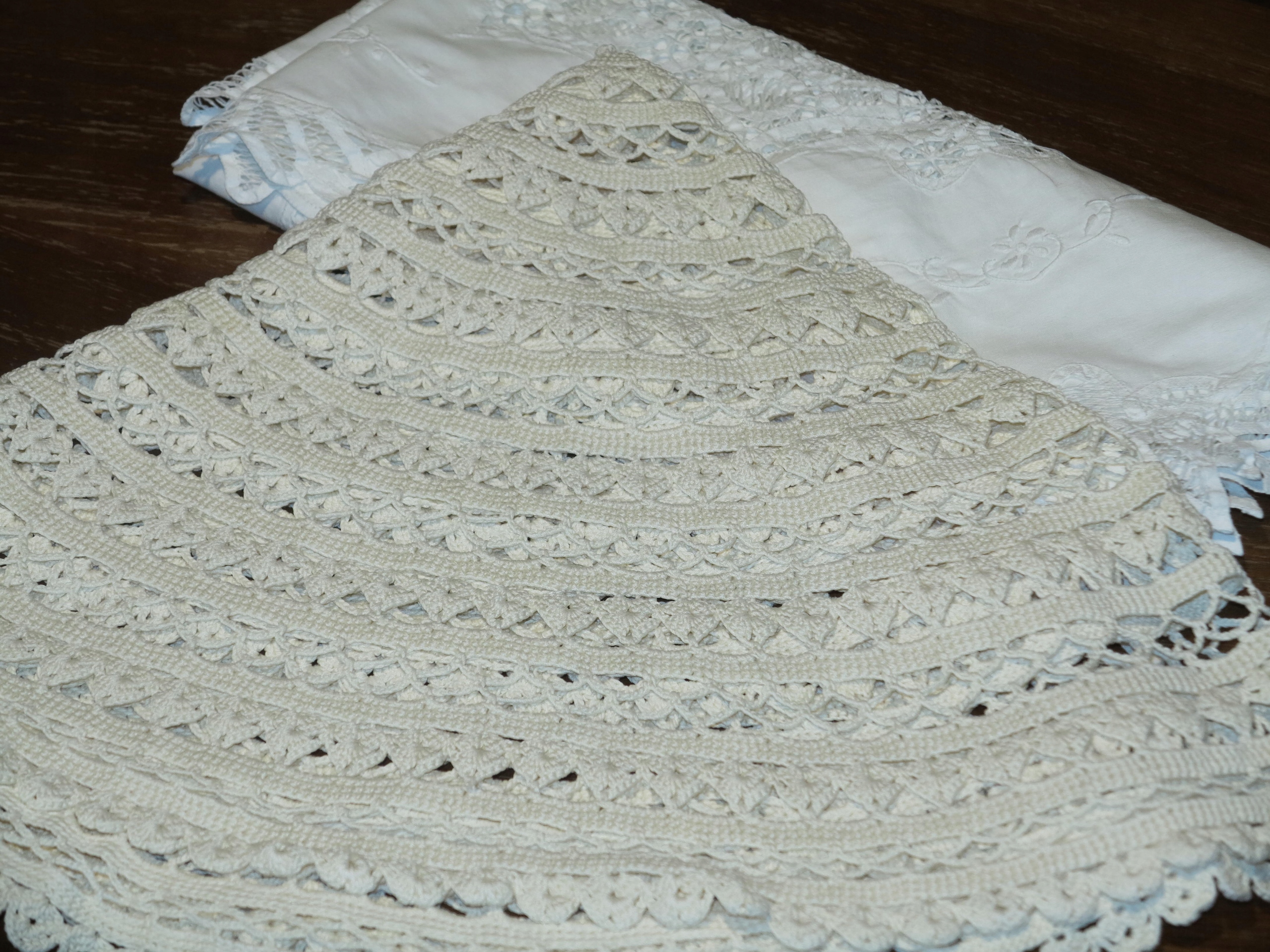 Предметом аукціону є красива скатертина-кордон ручного в'язання круглої форми кольору екрю. Його розміри: виміряно: 85 см. Скатертина б/у, в дуже хорошому стані та якості. Я рекомендую цю гарну річ.