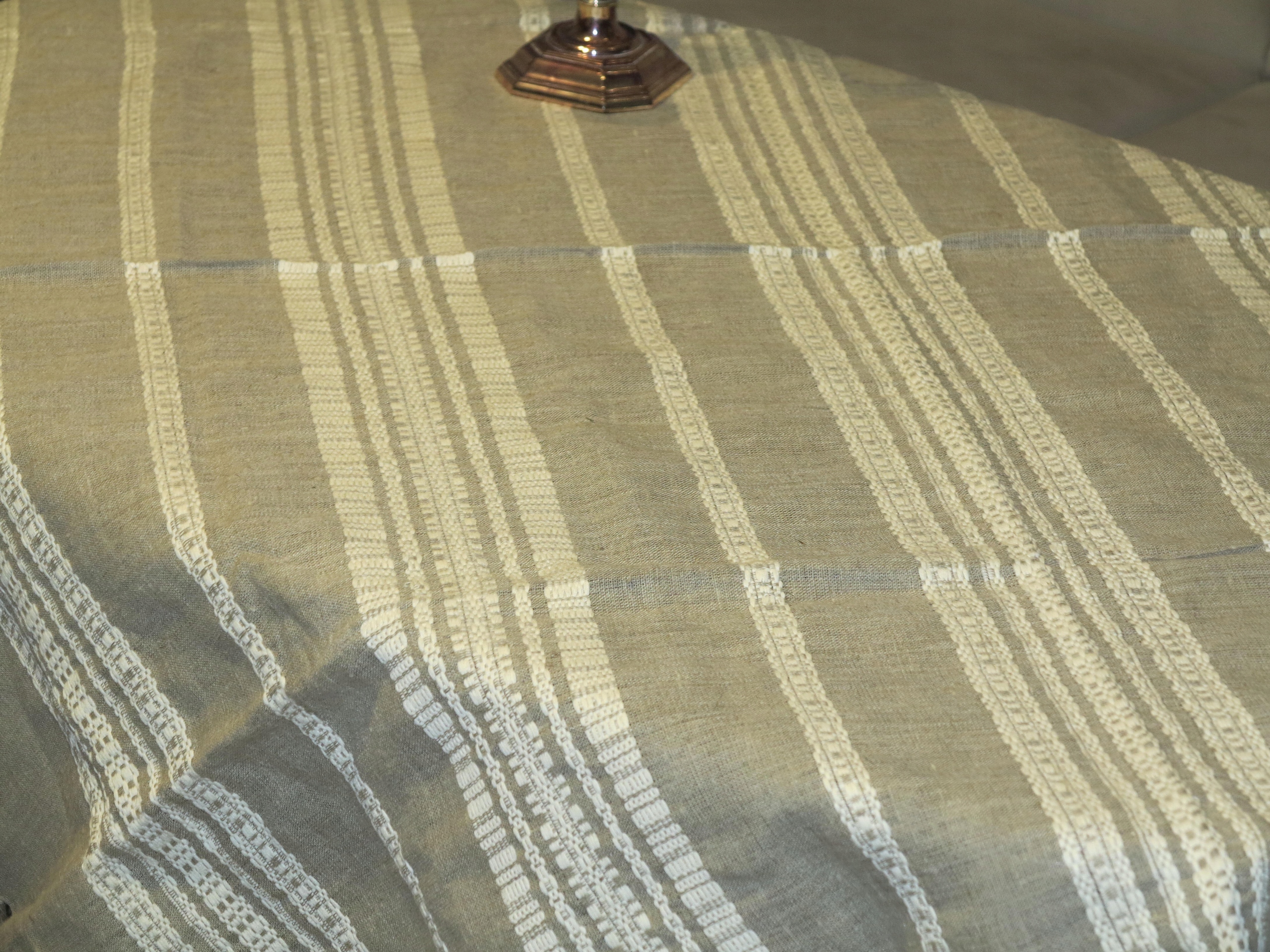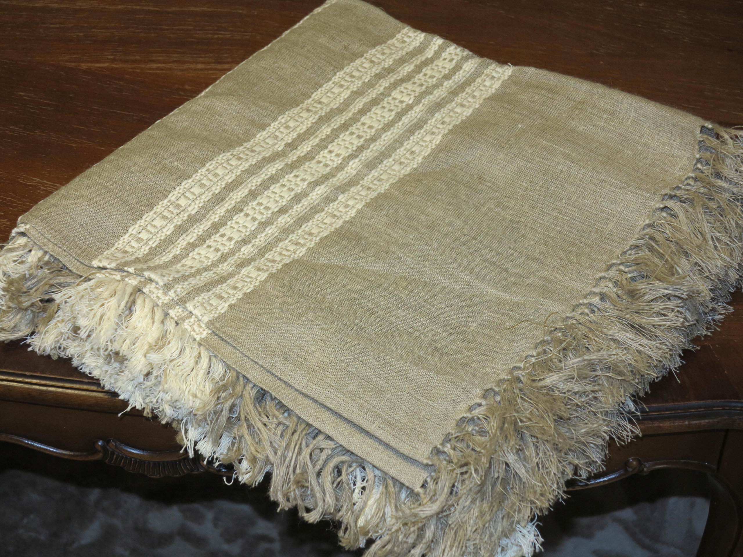 ЧУДОВУ СКАТЕРТИНУ З ЧИСТОГО ЛЬОНУ БЕЖЕВОГО КОЛЮ З КРЕМОВИМ СМУЖКОМ. НАВКОЛО