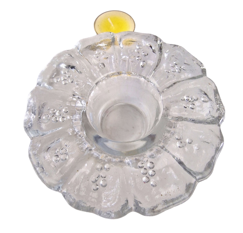 ГАРНА СКЛЯНА ПІДСВІЧНИЦЯ ЯК КВІТКА СКАНДИНАВСЬКЕ ХУДОЖНЄ СКЛО / для чайних свічок